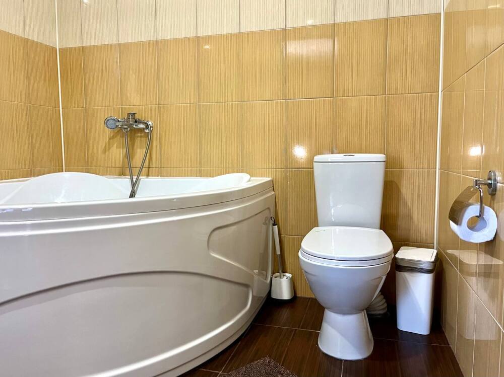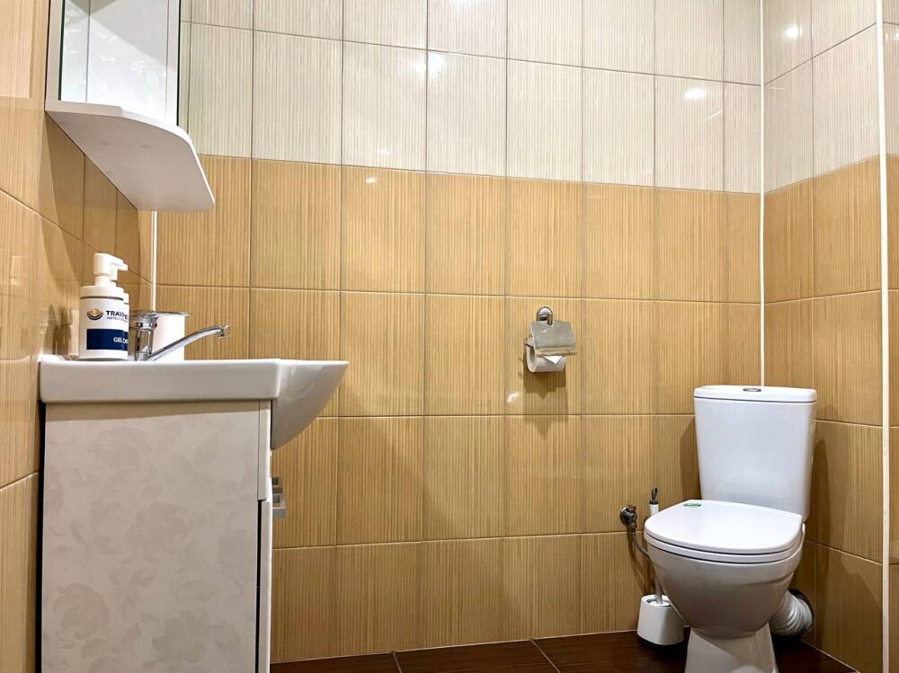 Ванная комната укомплектована всеми необходимыми косметическими принадлежностями.