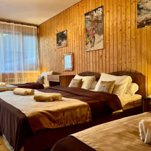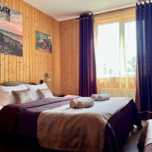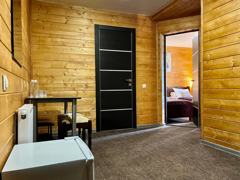 Уютный 2-комнатный номер-полулюкс с прихожей и столовой зоной. Четыре основных места, возможно дополнительное место - еврораскладушка. Номер оборудован всем необходимым для комфортного проживания. Из окна открывается вид на горы.