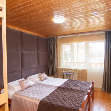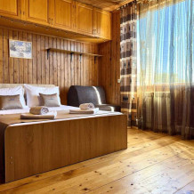 Уютный 2-комнатный номер-люкс, (основных мест 4, возможно дополнительное место - еврораскладушка), оборудованный всем необходимым для комфортного проживания. Из окна открывается потрясающий вид на горы.