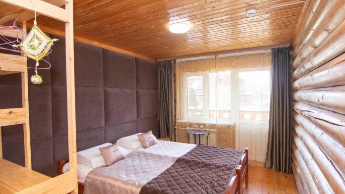 Просторный 4х местный номер с выходом на террасу в доме из натурального сруба сосны.