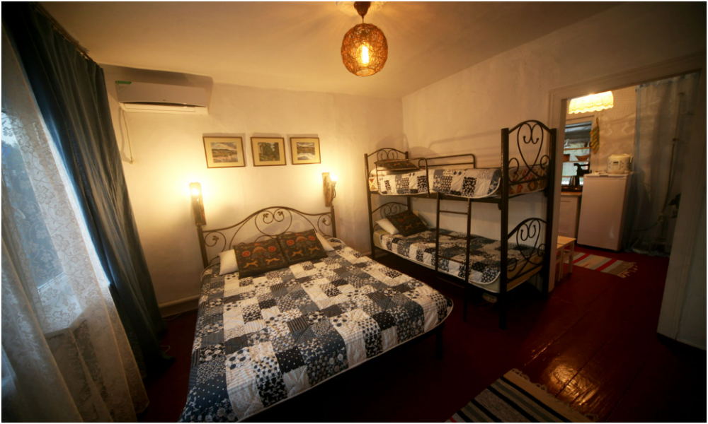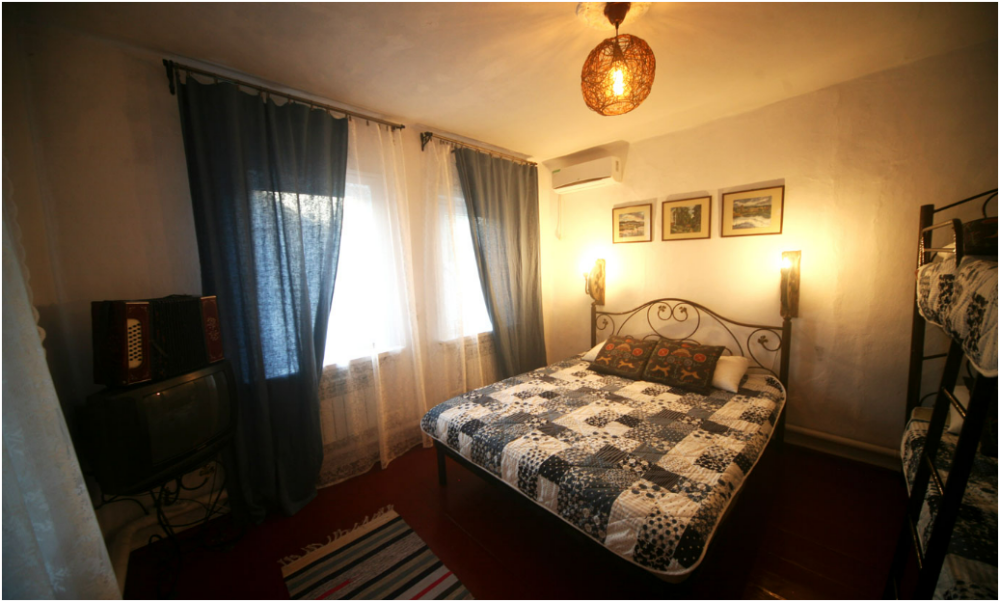 Мы предлагаем Вам целый дом с садом, баней, сеновалом, террасой с видом на горы и площадкой для барбекю для комфортного размещения 4-х человек по цене 2-местного номера в гостинице. Дом полностью укомплектован бытовой техникой. В Вашем распоряжении посуда, постельное белье, полотенца, принадлежности для барбекю. Во дворе закрытая парковка, баня, зона барбекю, терраса и сеновал.