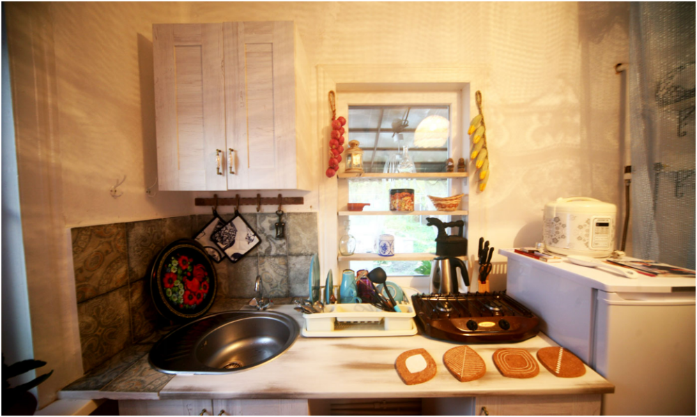 Уютная кухня с самоваром и русской печкой. Готовьте как дома. У Вас все для этого есть. Вся необходимая бытовая техника. Будьте, как дома!