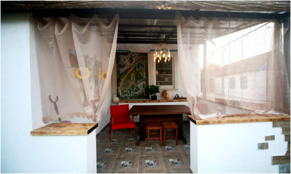 Тихое место. Фактически на опушке леса. Собственный сад. Тихий зеленый дворик полностью в Вашем распоряжении. Терраса с видом на горы. Отличное место для душевных посиделок. Площадка для барбекю. Любите посидеть у костра с гитарой? Вам сюда.