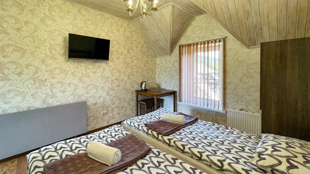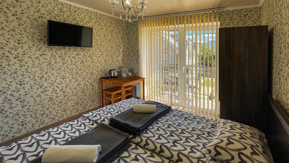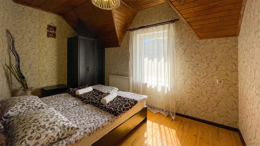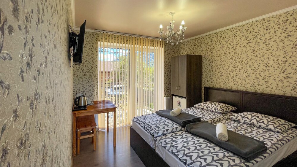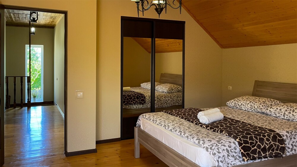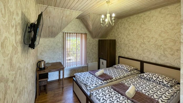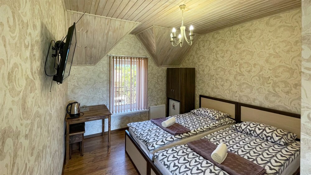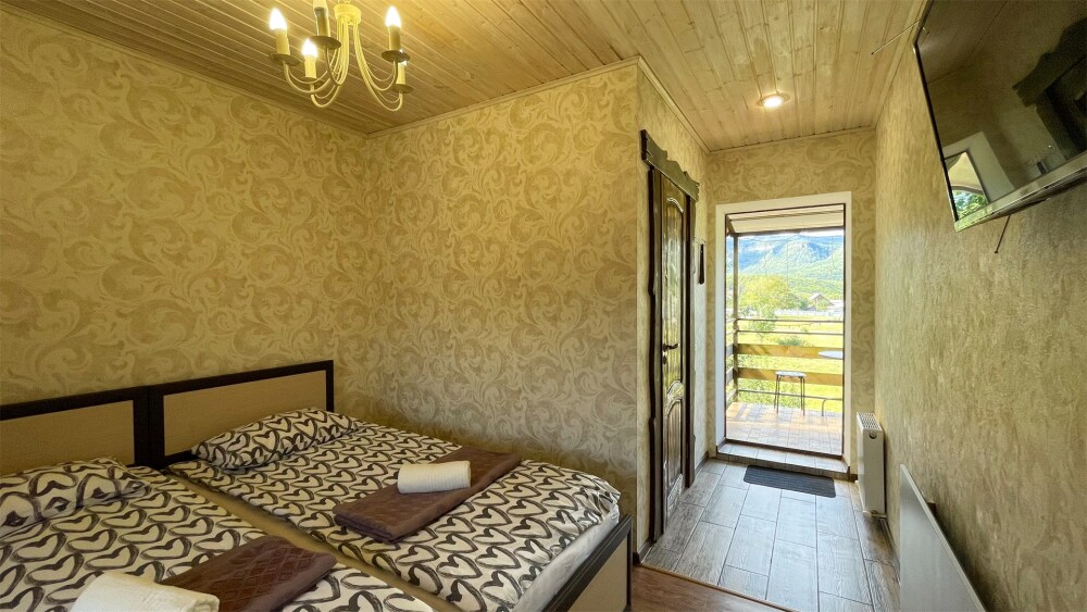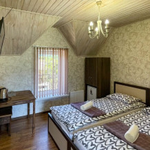К Вашим услугам 2-местные номера и отдельно стоящий двухэтажный коттедж площадью 120 кв.м., вместимостью до 10 гостей. Из окон открывается вид на горы. Во всех номерах есть ЖК-телевизор, чайник, холодильник, фен. В собственной ванной каждого номера установлена душевая кабина, а также предоставляются тапочки и туалетно-косметические принадлежности. В коттедже 4 изолированные спальни, оборудованная кухня, гостиная-столовая, санузел, а также большая открытая беседка с мангалом.
