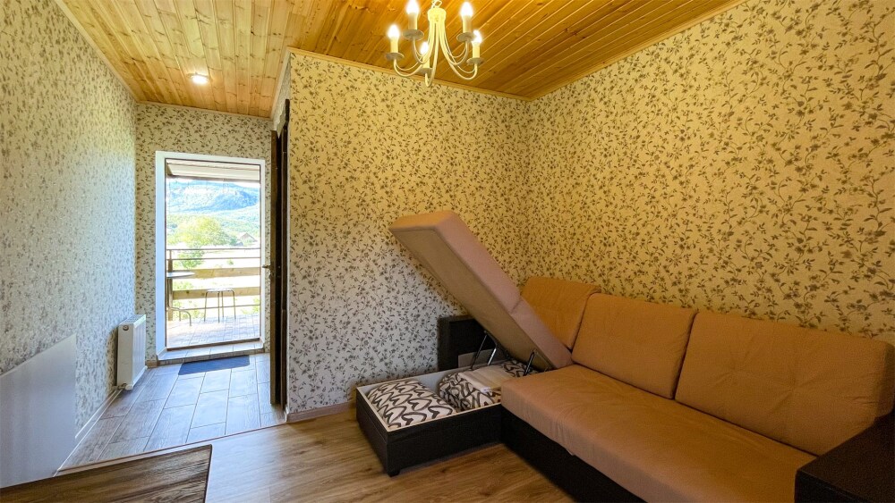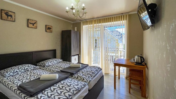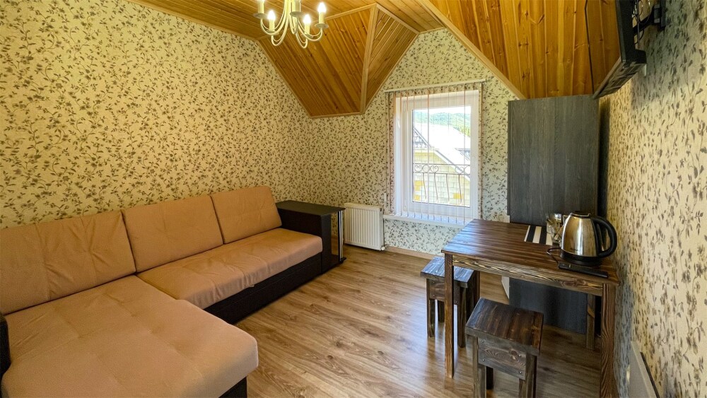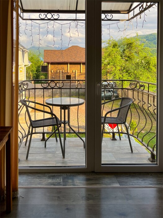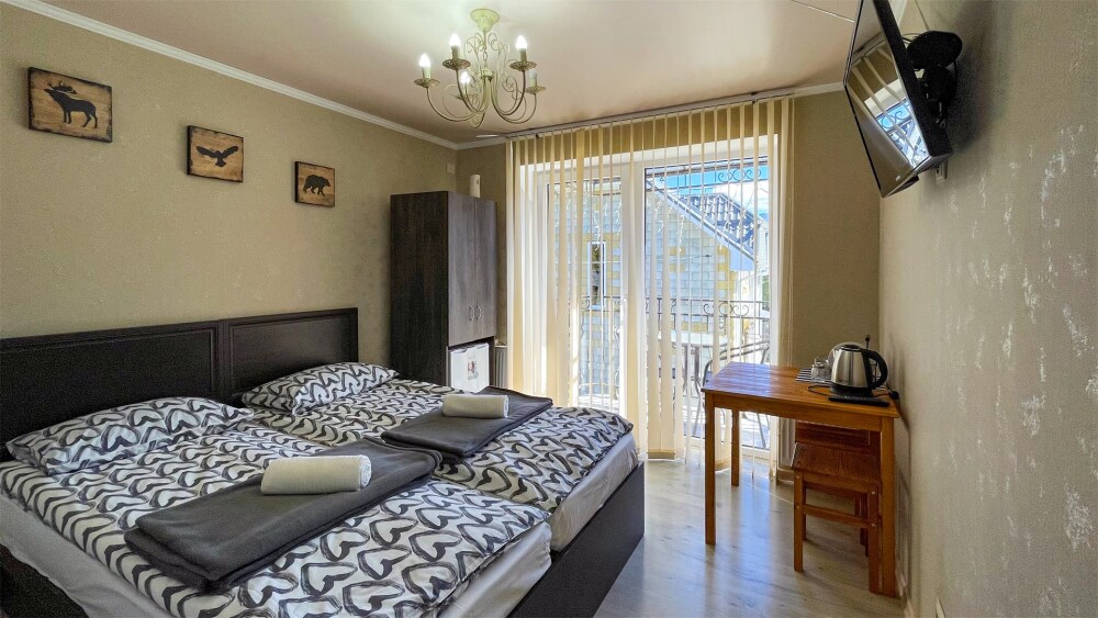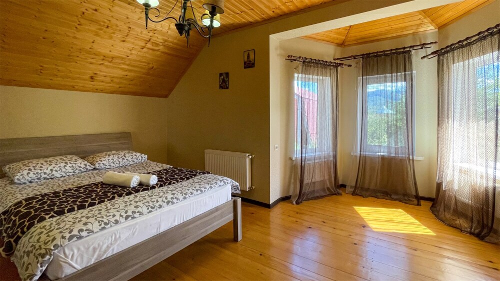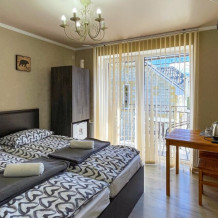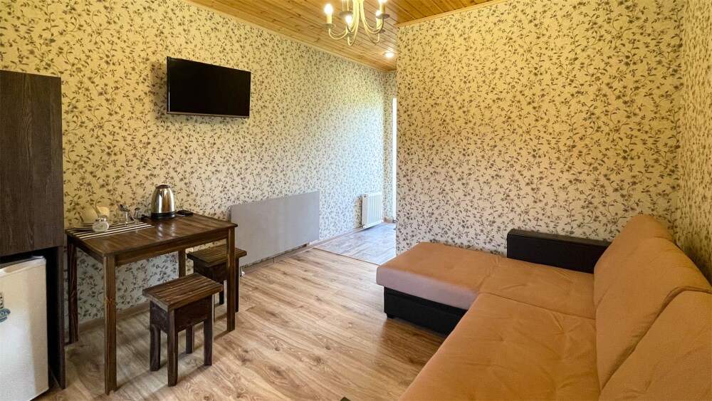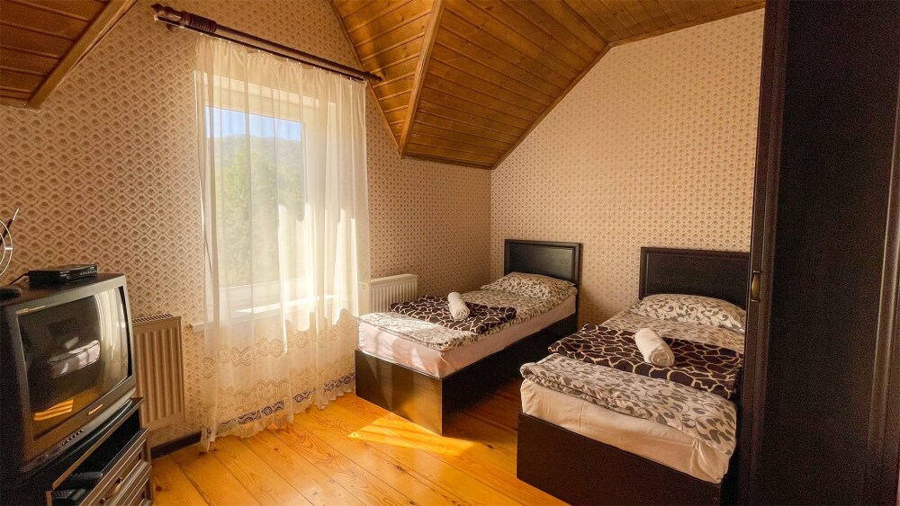 К Вашим услугам 2-местные номера и отдельно стоящий двухэтажный коттедж площадью 120 кв.м., вместимостью до 10 гостей. Из окон открывается вид на горы. Во всех номерах есть ЖК-телевизор, чайник, холодильник, фен. В собственной ванной каждого номера установлена душевая кабина, а также предоставляются тапочки и туалетно-косметические принадлежности. В коттедже 4 изолированные спальни, оборудованная кухня, гостиная-столовая, санузел, а также большая открытая беседка с мангалом.