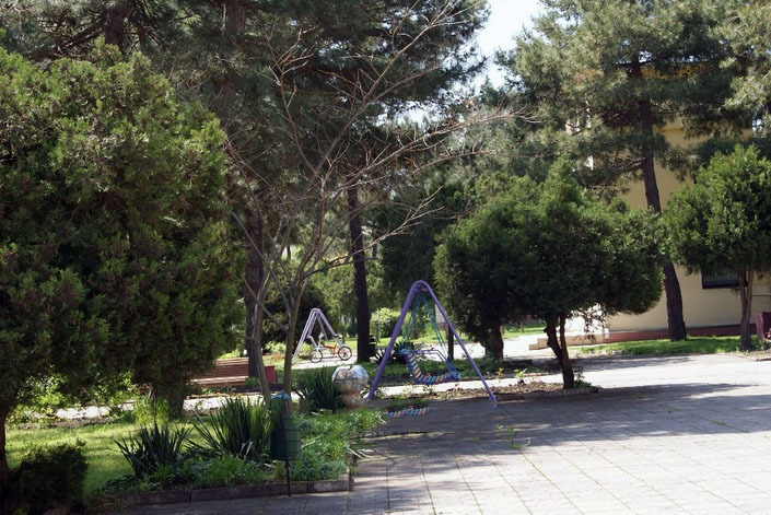 Комплекс окружен лесопарком: берёзовая роща, хвойные деревья, зелёные насаждения, множество цветов, беседки и лавочки. Общая площадь составляет 6 гектар. Воды Черного моря плещутся всего в 200 метрах от жилых корпусов комплекса.