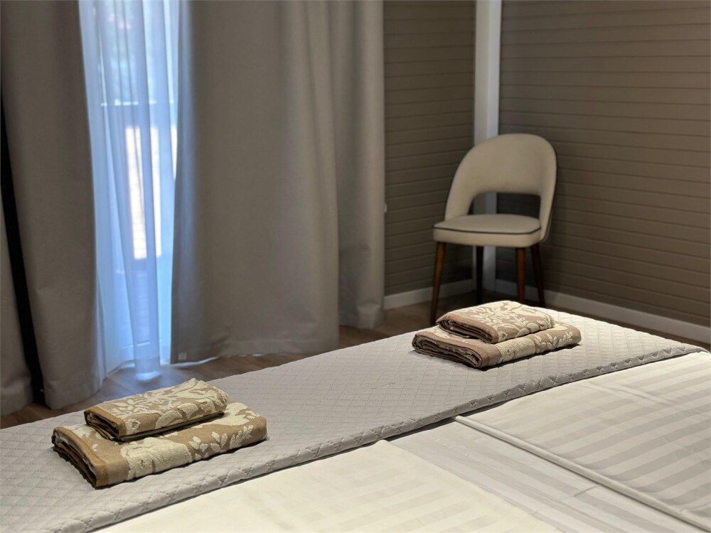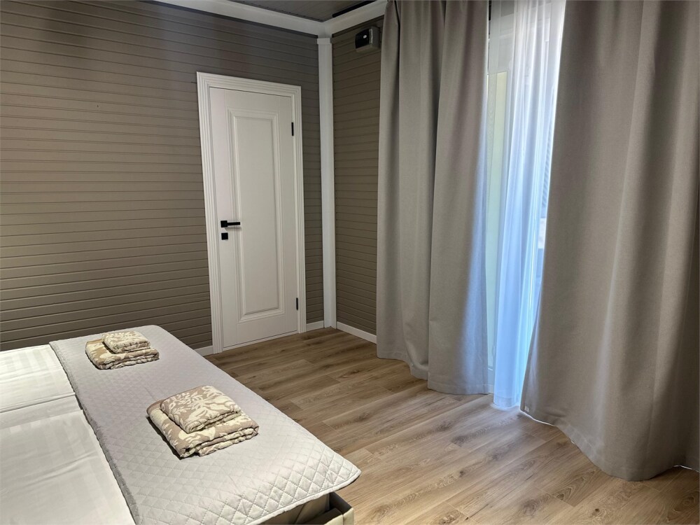 Просторный двухкомнатный номер с 2 санузлами. Номер располагается на 2 этаже, с балкона открывается вид на море и зеленый двор.
