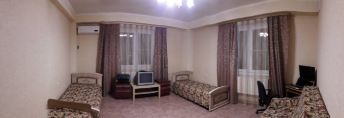 Для размещения предлагаются комнаты с удобствами, рассчитанные на проживание до 12 человек в доме. В каждой комнате - удобная мебель, TV, Wi-Fi, небольшие холодильники, кондиционеры.