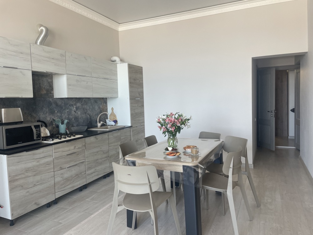 Уютная квартира с видом на море и общей террасой. На кухне есть все необходимое для приготовления еды.