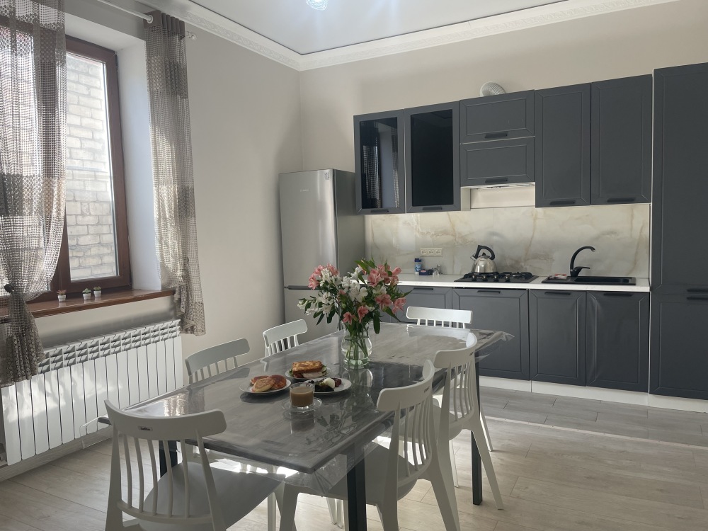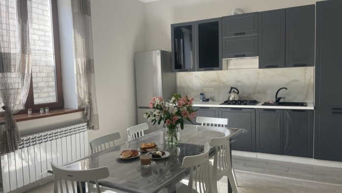Апартаменты с красивым современным ремонтом. Кухня оборудована всем необходимым для комфортного отдыха.