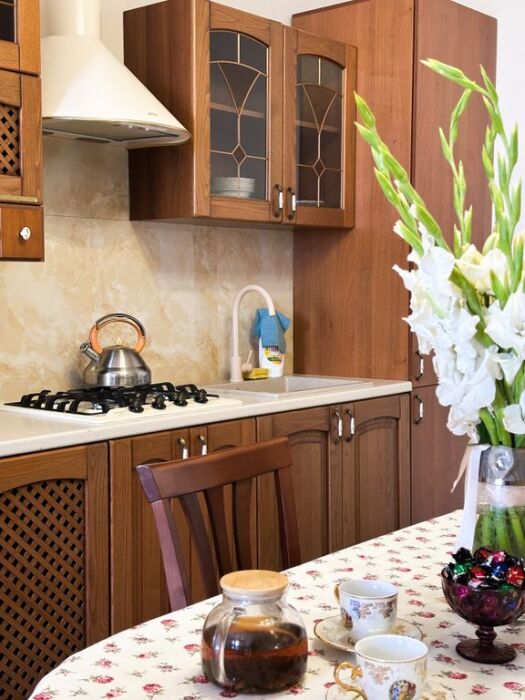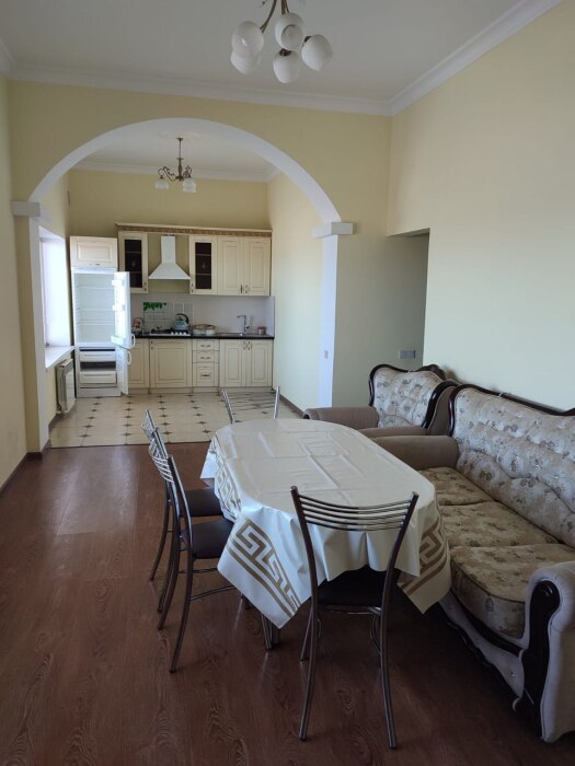 Большая квартира с новым современным ремонтом для приятного семейного отдыха. Кухня оборудована всем необходимым для приготовления еды.