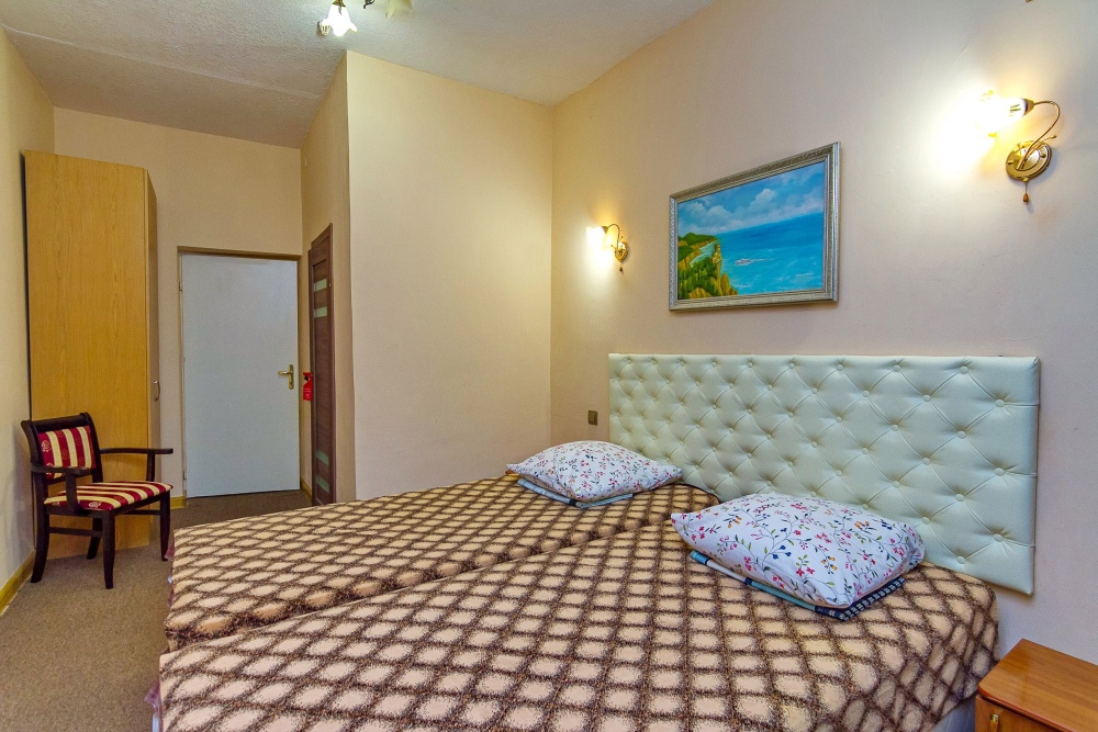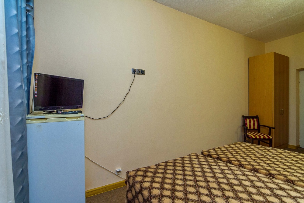 В корпусе А пансионата Азов располагается семь двухместных номеров на первом этаже, номера имеют необходимое для комфортного проживания как летом, так и зимой. В двухместных номерах Азова установлены: две односпальные кровати, телевизор, кондиционер, холодильник, шкаф и стол со стулом. Удобства в номере. Все номера, кроме одного, имеют балкон с видом на территорию пансионата Азов. Мы ждем Вас в любое время года, принимаем отдыхающих, командировочных.