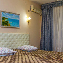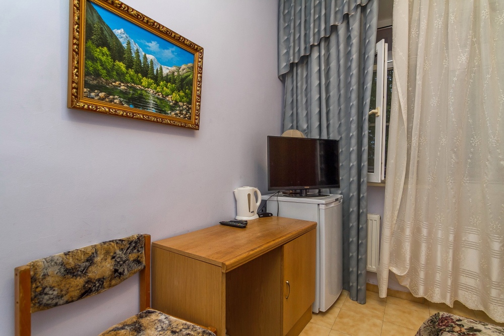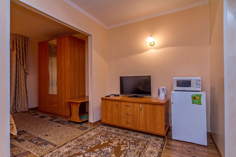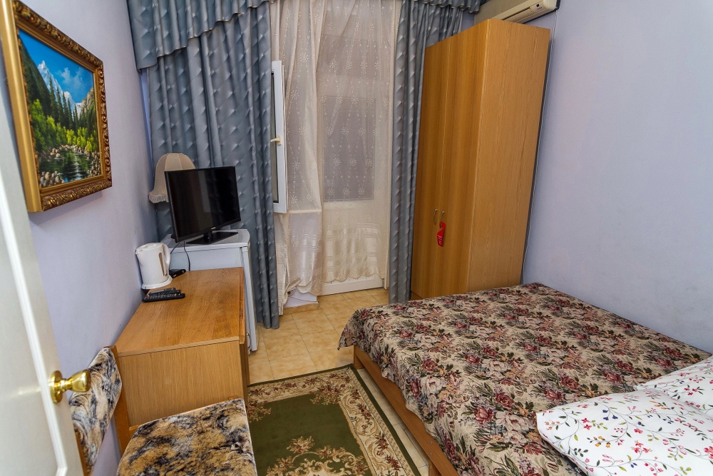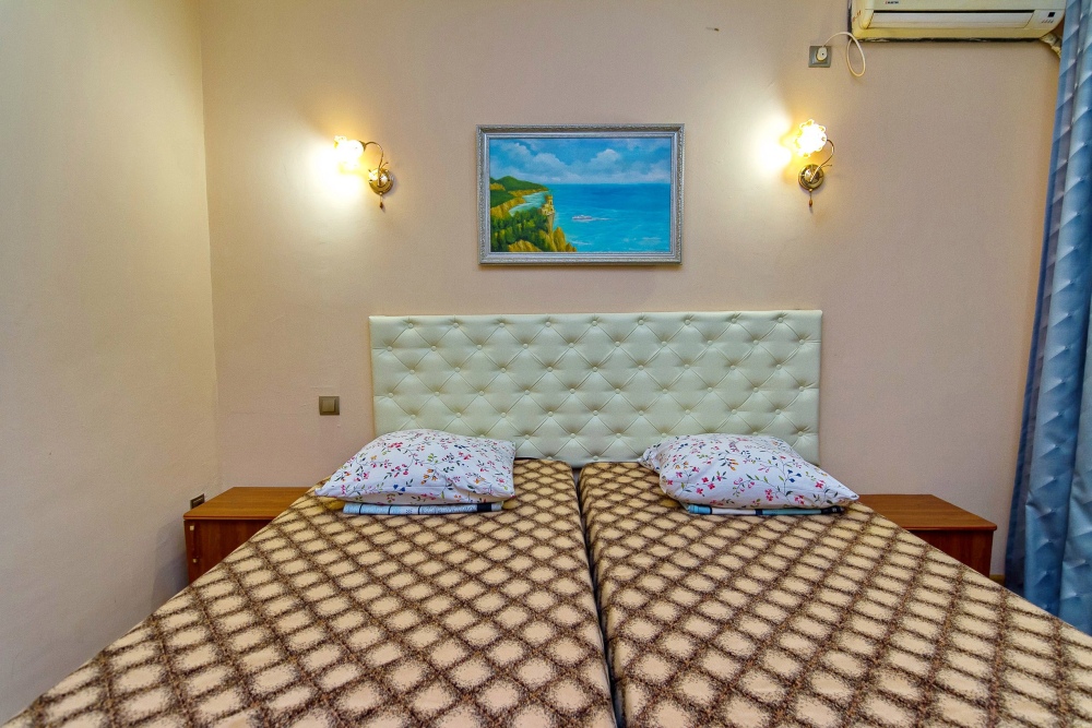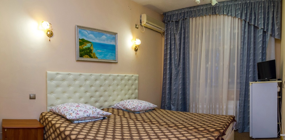 Отдыхающим предлагаются номера разных категорий и вместимости. Все номера имеют телевизор, холодильник, кондиционер.
