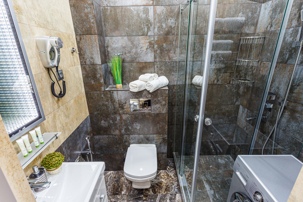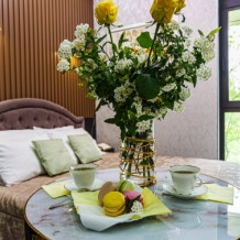 ОПИСАНИЕ: Уютная студия повышенной комфортности с дизайнерским ремонтом. Соответствует всем современным тенденциям и удовлетворит самого требовательного гостя. Двуспальная или две односпальных кровати с ортопедическим матрасом, позволит Вам каждое утро чувствовать себя по-настоящему отдохнувшим. Раскладной диван и полностью оснащенная кухня, холодильник, TV, Wi-Fi, фен, утюг, стирал. машина, кондиционер, белоснежное постельное белье и полотенца, средства для душа, зубные наборы, тапочки.
