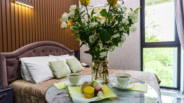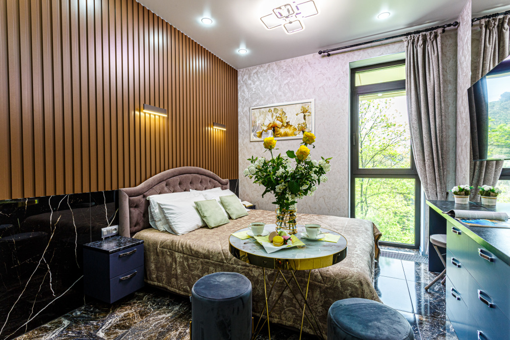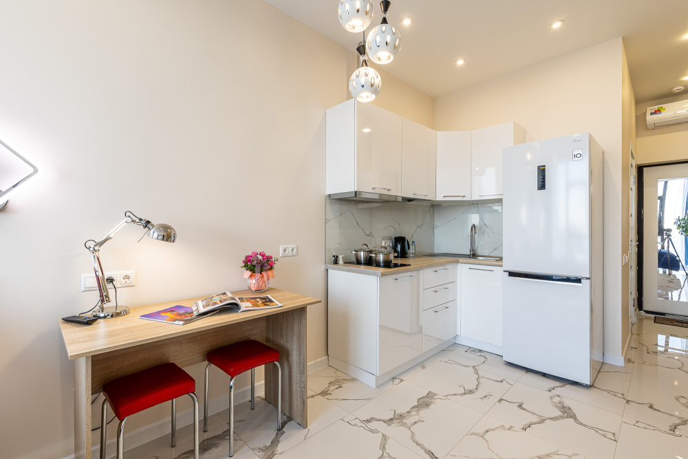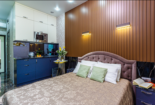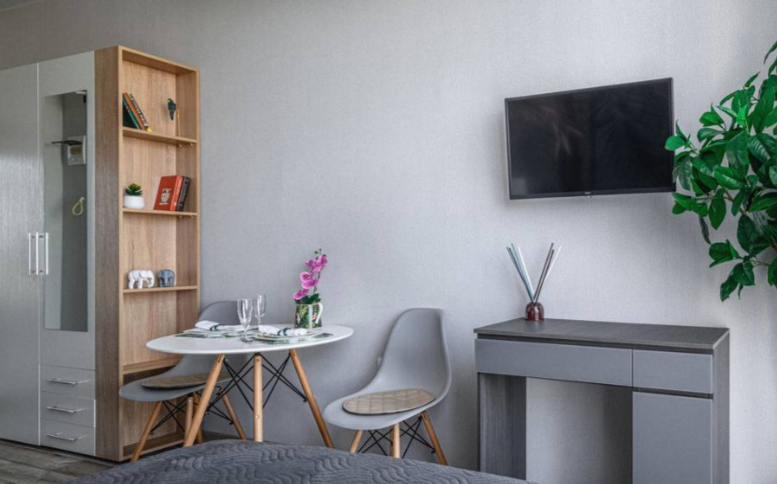 Для проживания гостям предлагаются новые, стильные студии с повышенным уровнем сервиса, оснащенные комфортными спальными местами, техникой, кухней, постельными принадлежностями и прочее.
