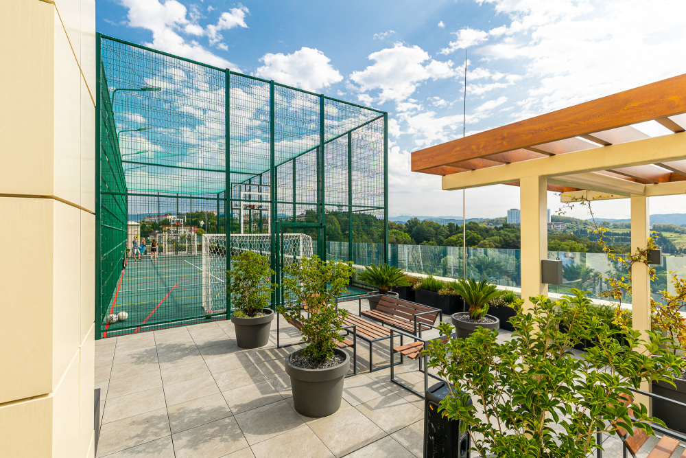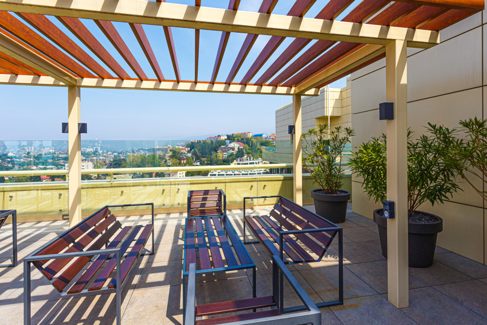 ЖК «Метрополь» дом бизнес-класса с эксплуатируемой крышей с панорамой 360 градусов на город! Со своим БАССЕЙНОМ, зоной ворк-аута, многофункциональной спортивной площадкой, шезлонгами, зонами отдыха. На крыше проводятся занятия йогой. Двор с ландшафтным дизайном, подвесными креслами, фонтаном и большой детской площадкой. Жилой комплекс граничит с парком Дендрарием, в шаговой доступности цирк, Зимний театр, магазины, лучшие рестораны и кафе.