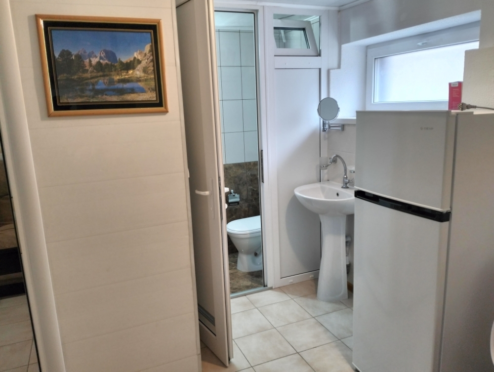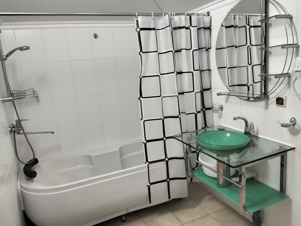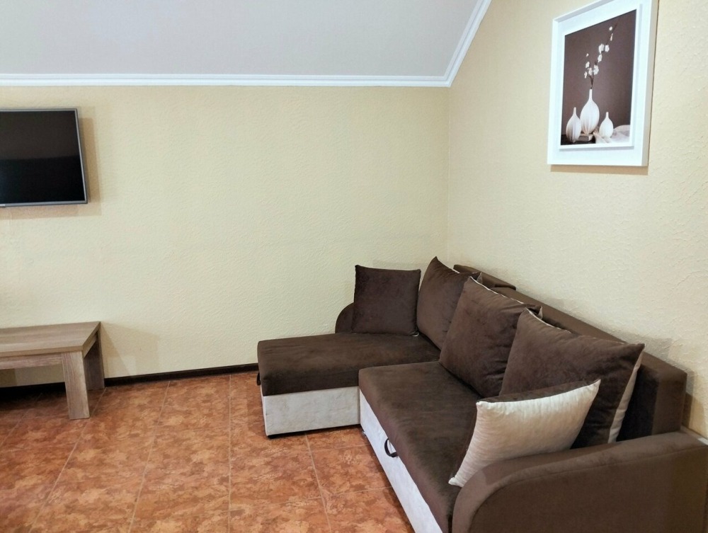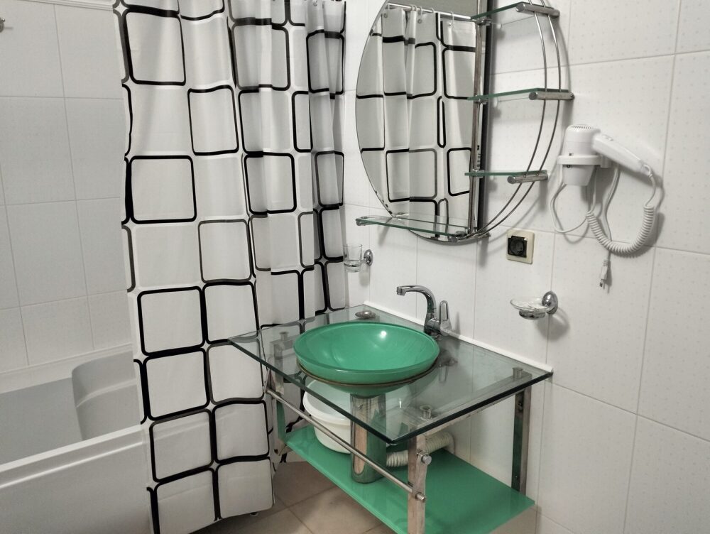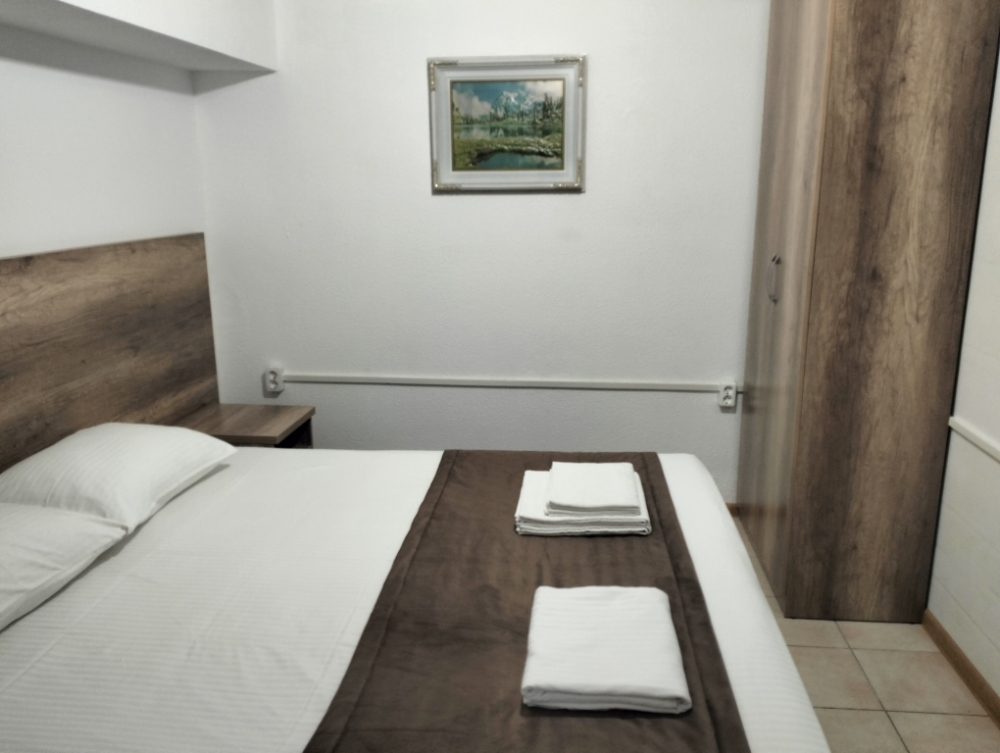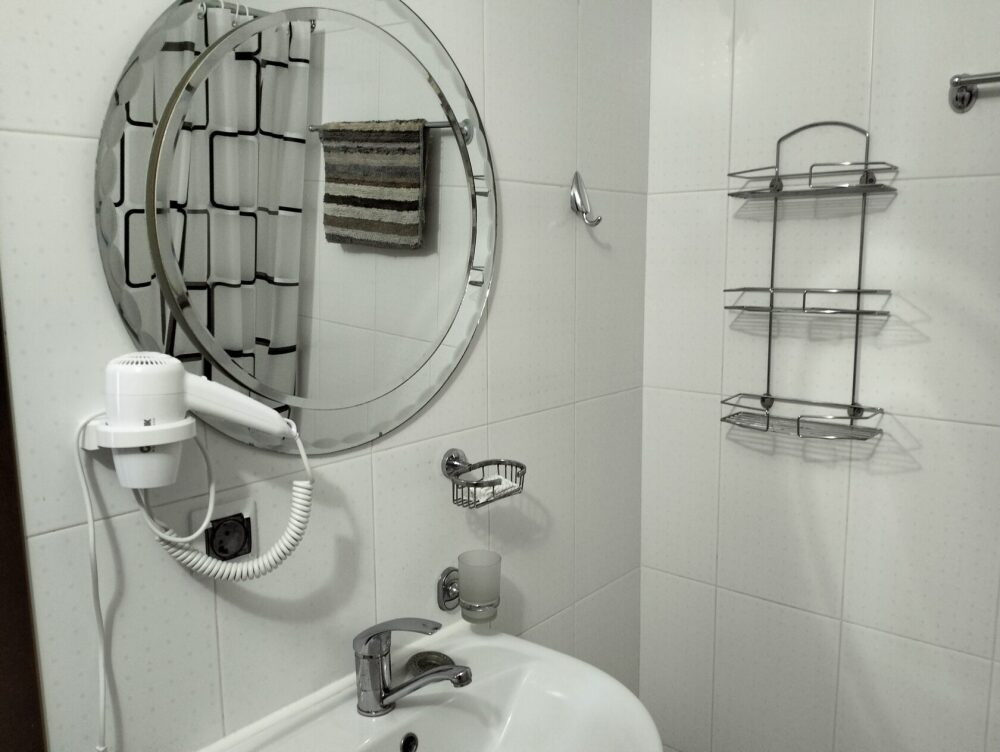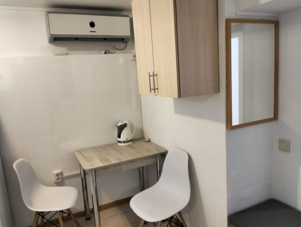 В номере сплит-система, мини-холодильник, электрический чайник, TV, шкаф. Санузел с ванной на 1 номер (вход из коридора).