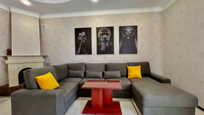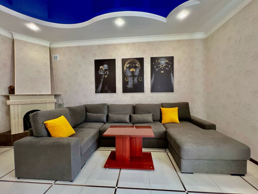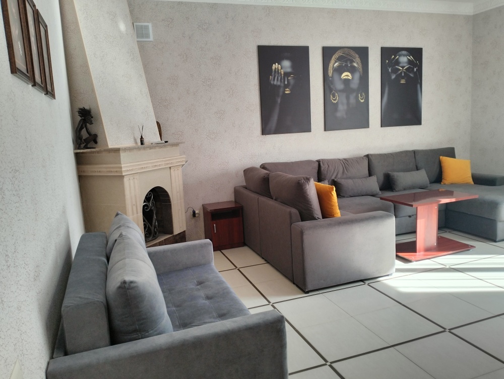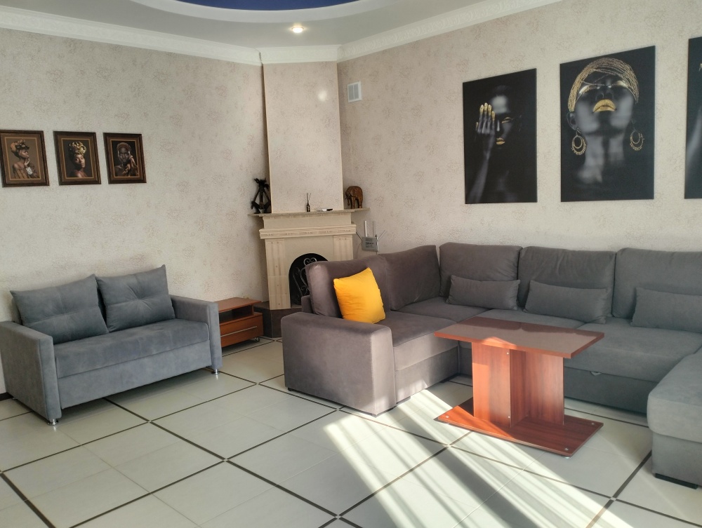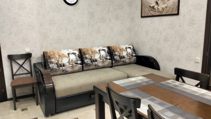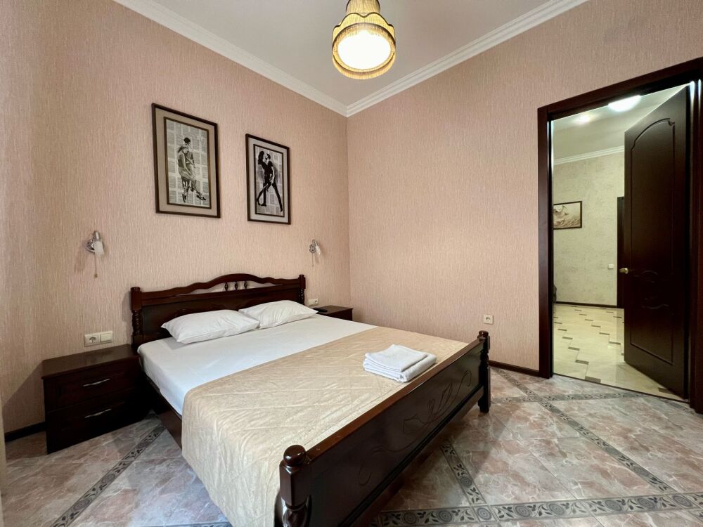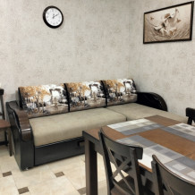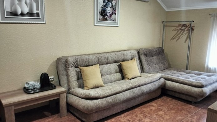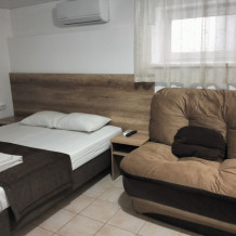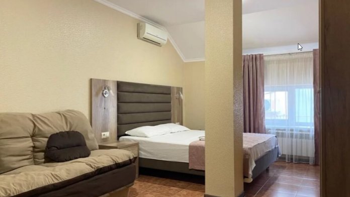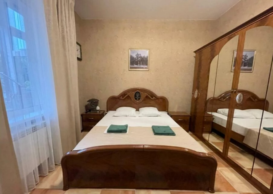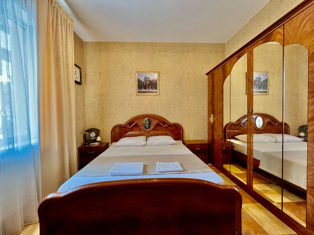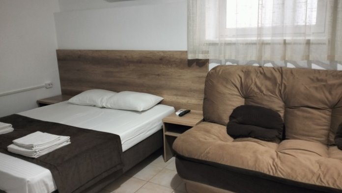 Четырехместный номер с двуспальной кроватью и двуспальным диваном.