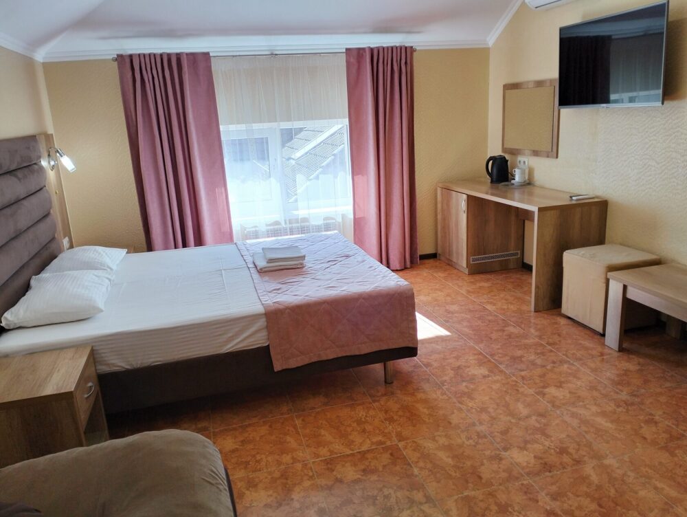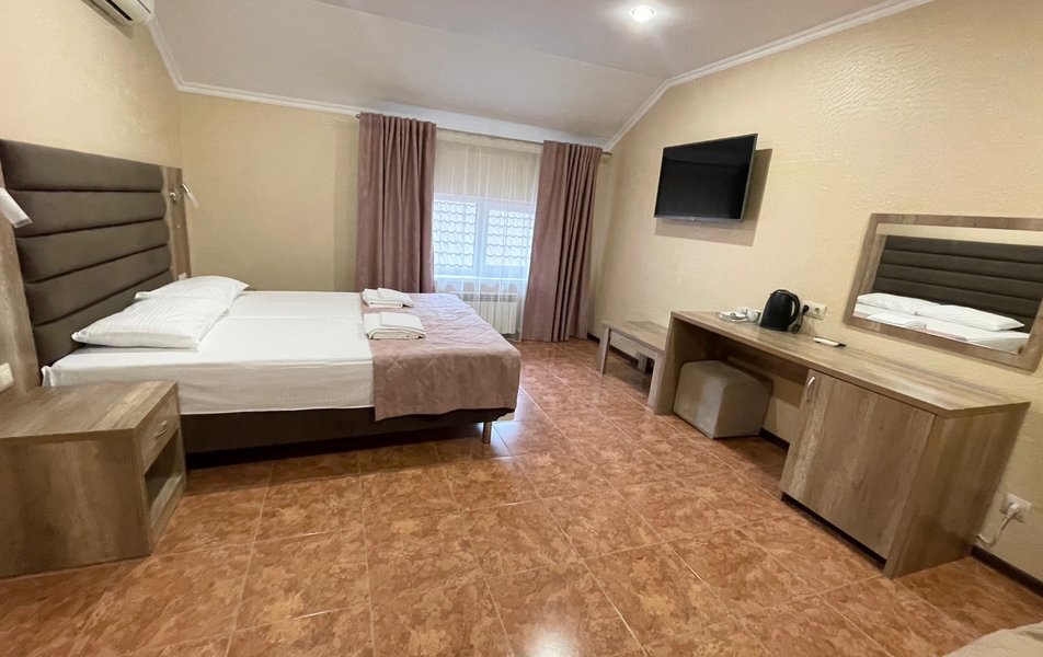 Гостям, для проживания, предлагаются уютные номера разных категорий и вместимости, со всем необходимым для комфортного отдыха.