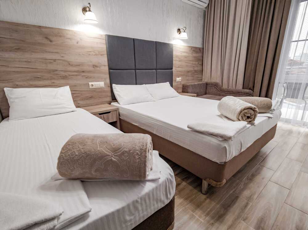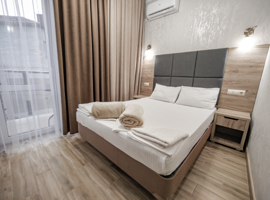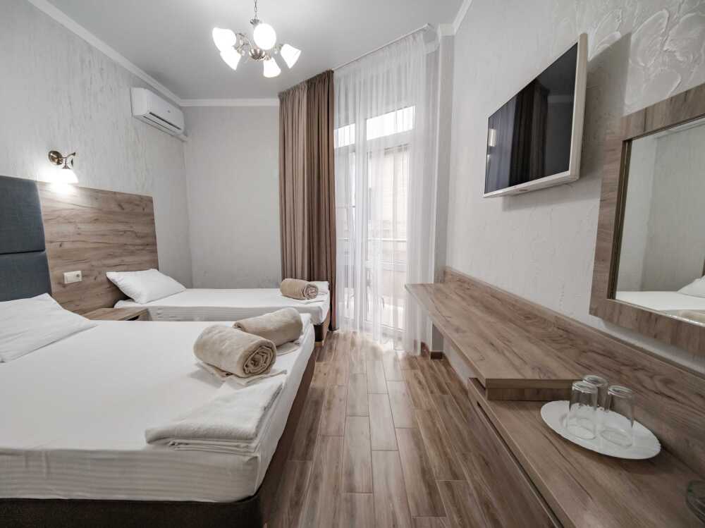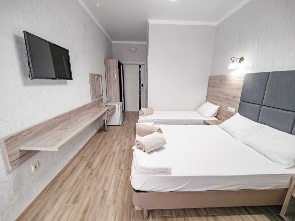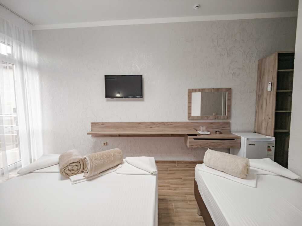Для проживания гостям предоставляются 2,3,4- местные номера со всеми удобствами: санузел (душ, туалет), сплит-система, ЖК-телевизор, холодильник, фен, интернет W-Fi, балкон (номера на первом этаже с выходом во двор, возле каждого номера летние стол, стулья).