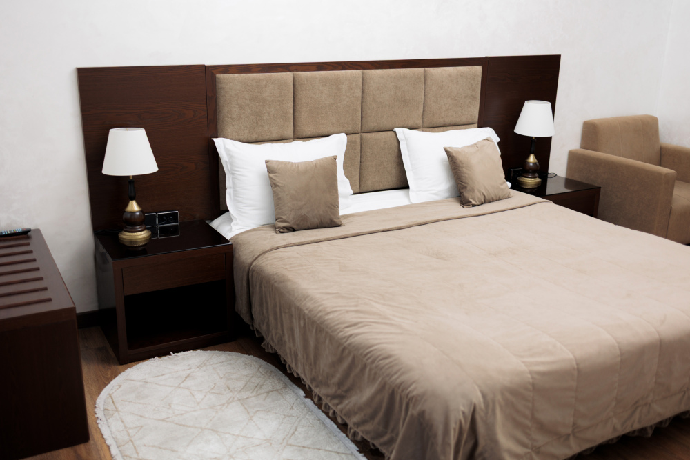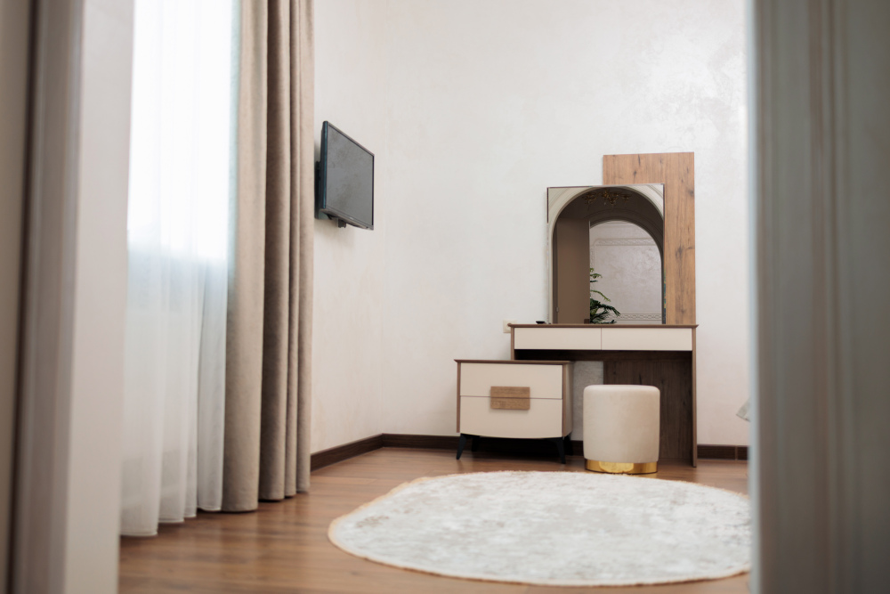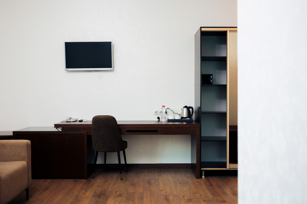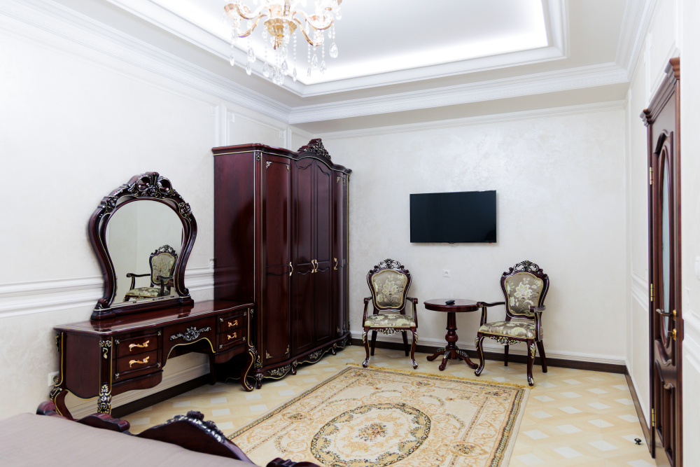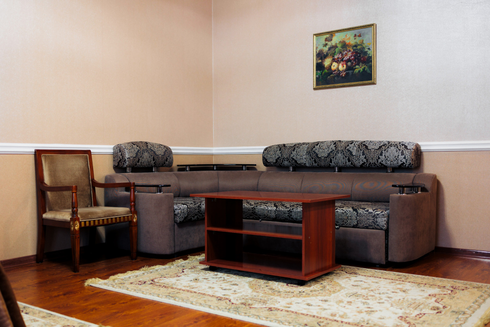 Максимальный уровень комфорта в гостинице. Две отдельные комнаты: спальня и гостиная. Подходит для длительного проживания, деловых гостей высокого уровня, семейных туристов. Пространство, приватность, удобство для работы и отдыха. Номер, в котором можно спокойно жить и принимать гостей.
