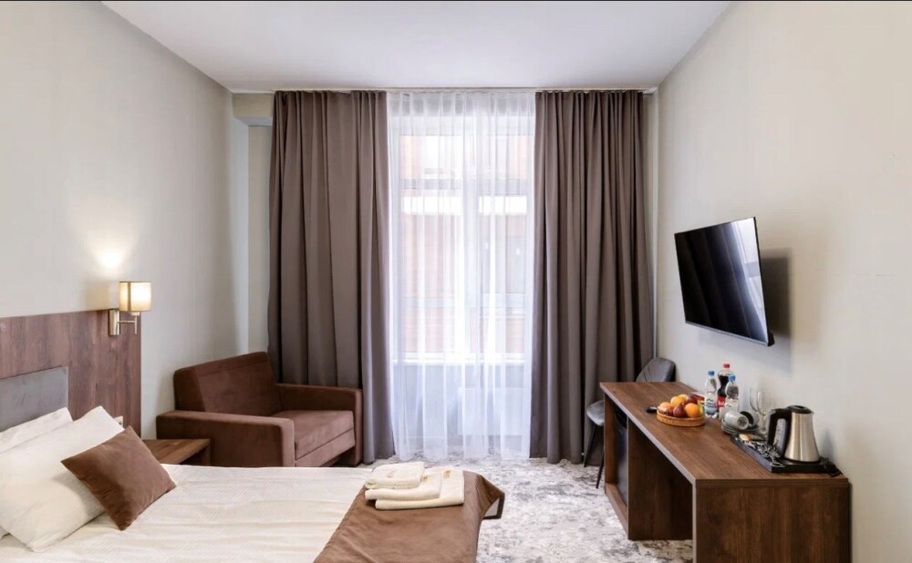 В номере еще есть раскладное кресло. Wi-fi бесплатный.