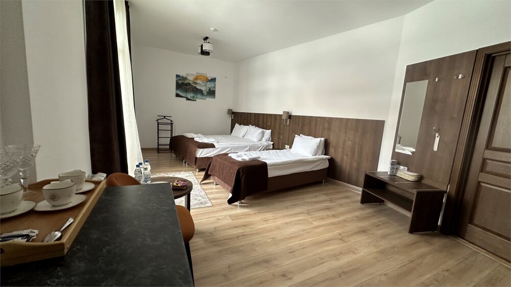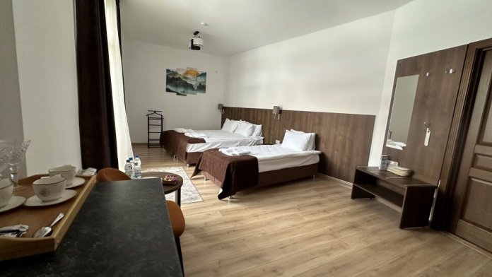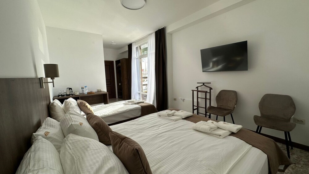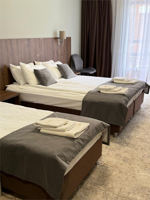 Номерной фонд отеля составляют двухместные, трехместные и четырехместные номера с удобными кроватями и раскладными креслами. В номерах есть все необходимые удобства для комфортного проживания. Парковка у крыльца. Wi-fi бесплатный.