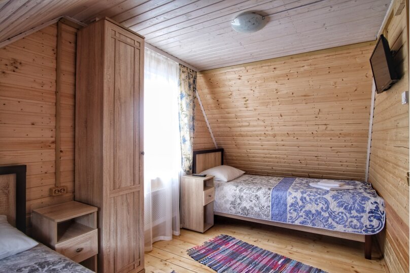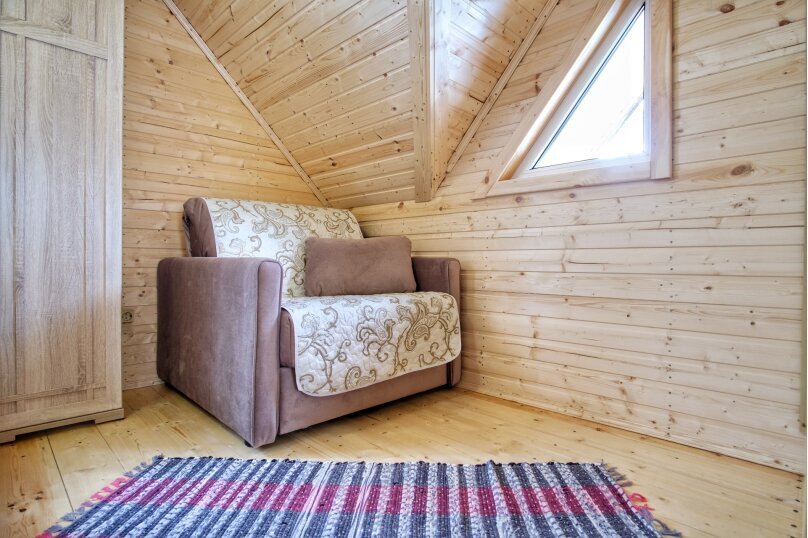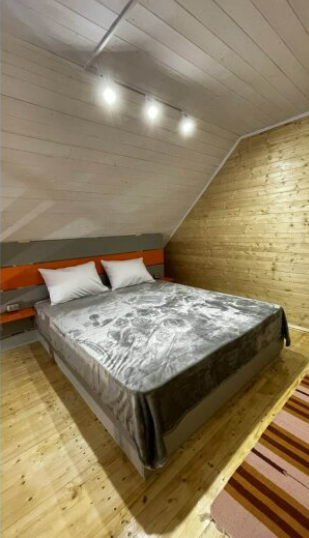 На втором – две спальни (в одной из них отличная двуспальная кровать, а в другой -две односпальных кровати). На втором есть этаже есть балкон, где Вы можете с удовольствием утром пить кофе, а ночью любоваться звёздами. Здесь есть все, что необходимо для комфортного отдыха.