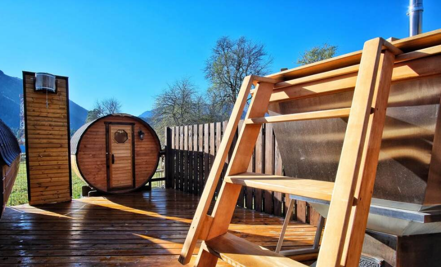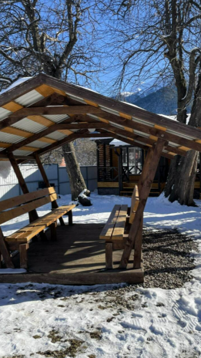 Дети могут развлекаться на детской площадке во дворе. Можно неторопливо пить чай или кофе в беседке, с чудесным видом на горы. Горный ручей, бегущий во дворе, создает приятный шум и атмосферу свежести.