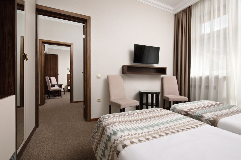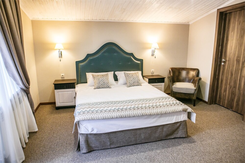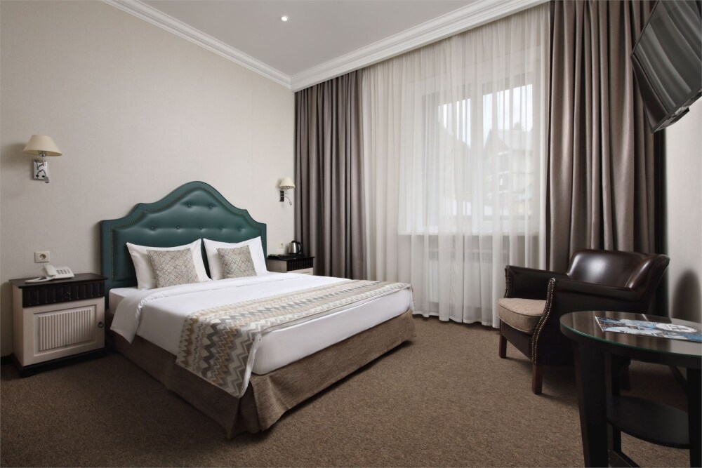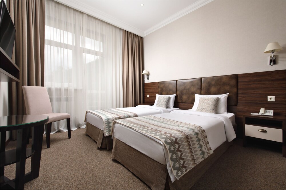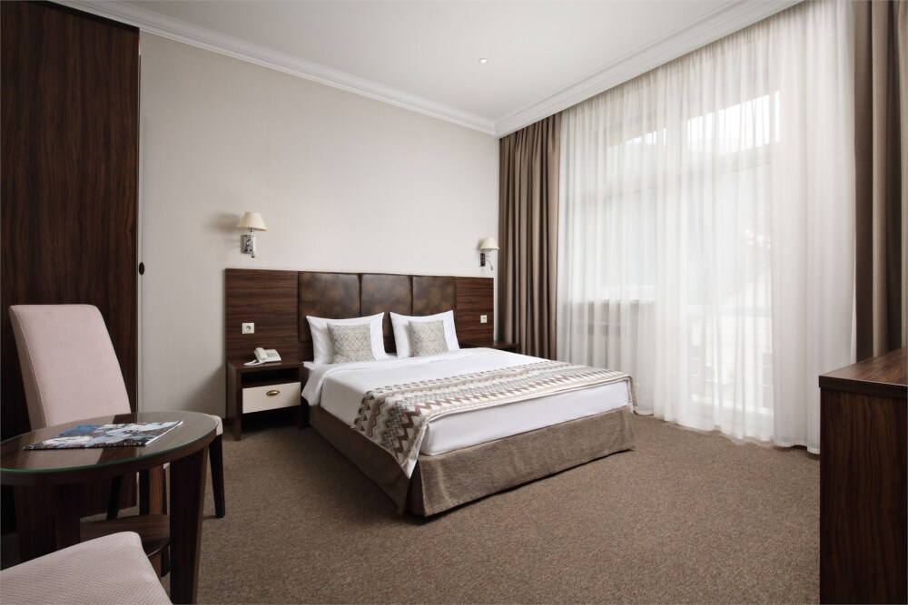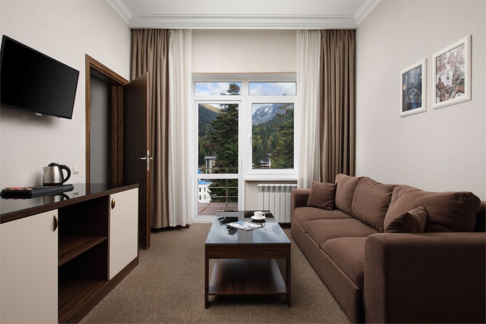 Из окон номеров открывается красивый вид на горы. К услугам гостей современные, высококомфортабельные номера, выполненные в строгом классическом стиле и оформленные в приятной цветовой гамме. Гости отеля могут воспользоваться услугами няни. Завтрак включен в стоимость номера.