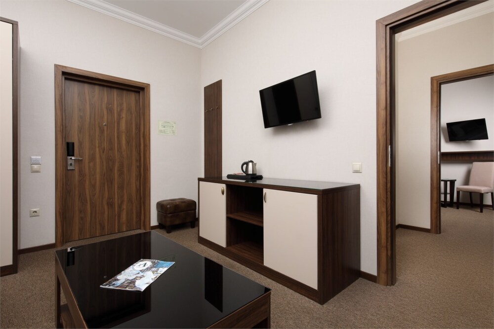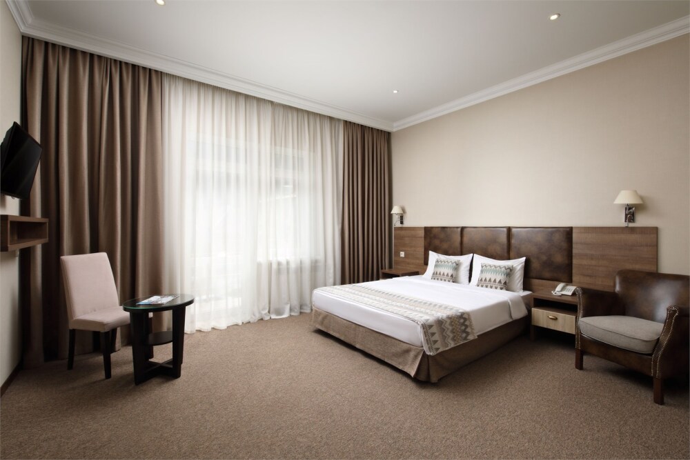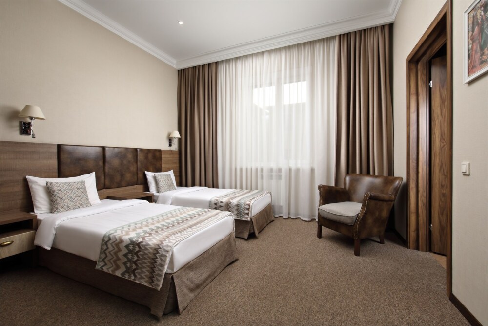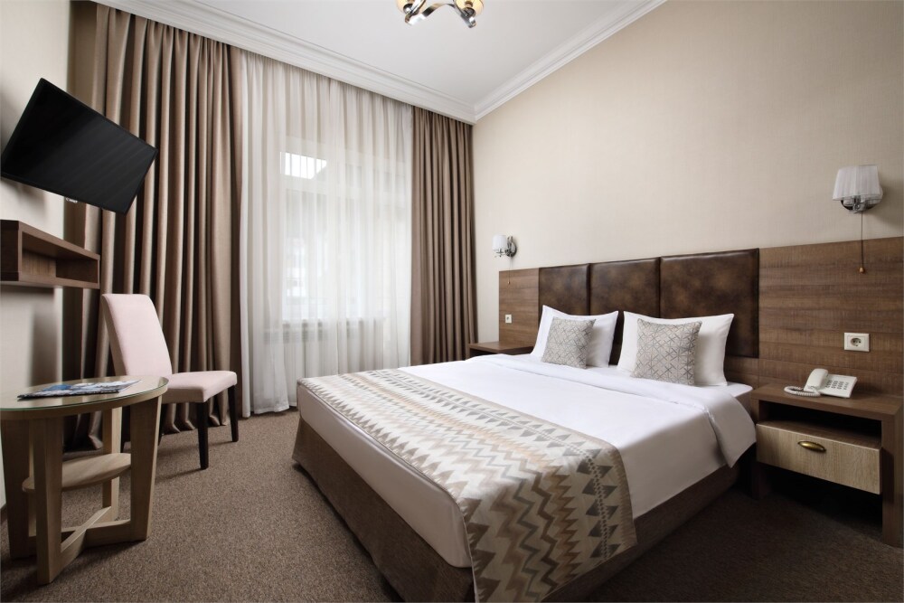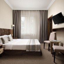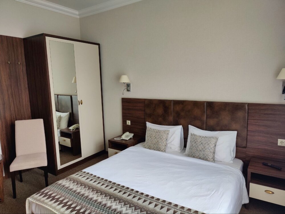 Из окон номеров открывается красивый вид на горы. К услугам гостей современные, высококомфортабельные номера, выполненные в строгом классическом стиле и оформленные в приятной цветовой гамме. Гости отеля могут воспользоваться услугами няни. Завтрак включен в стоимость номера.