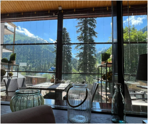 В пятиэтажном корпусе со стеклянным лифтом, расположенном при въезде в поселок Домбай, находятся по истине сказочный отель, дизайн и оснащение которого не уступают лучшим отелям России. До подъемников 500 метров.
