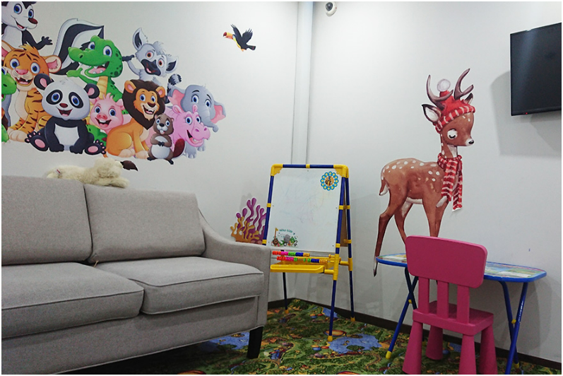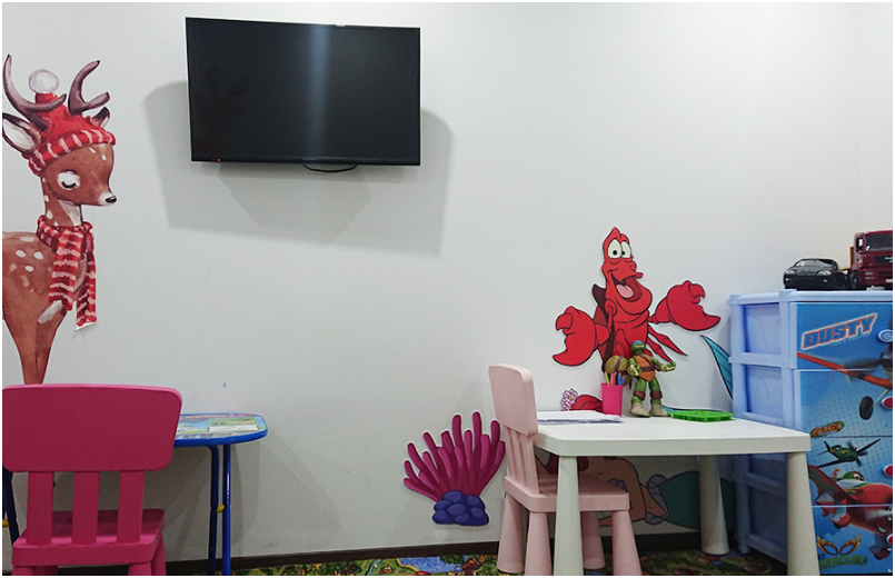 Для детей наших гостей в отеле предусмотрена игровая комната. Комната оборудована настольными играми, игрушками и мягкой мебелью. В комнате присутствует телевизор и ведётся круглосуточное видеонаблюдение, также происходящее в комнате доступно на канале в телевидении отеля. Территория отеля охраняется и находится под круглосуточным видеонаблюдением.