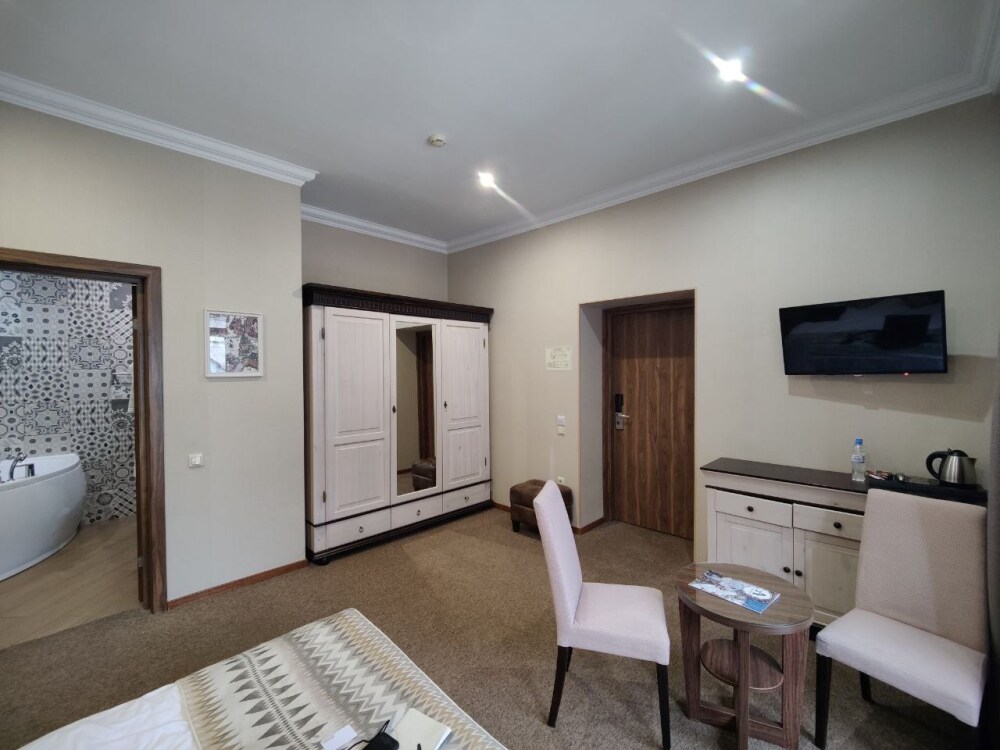 Нашим гостям предоставляется бесплатная круглосуточно охраняемая парковка. Также на территории есть дизайнерский ресторан с европейской, грузинской и кавказской национальной кухни. Вы можете арендовать ресторан для проведения торжества, корпоратива, конференции или любого мероприятия на базе нашего отеля.