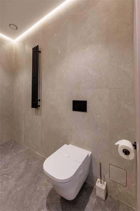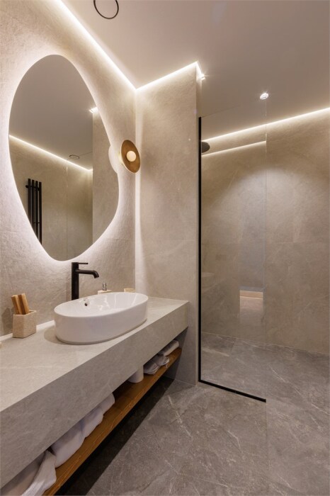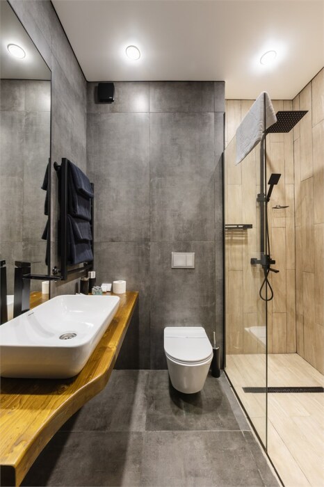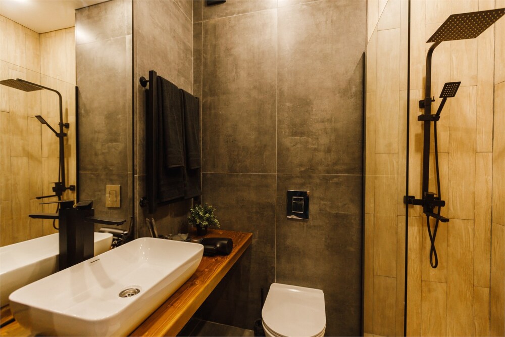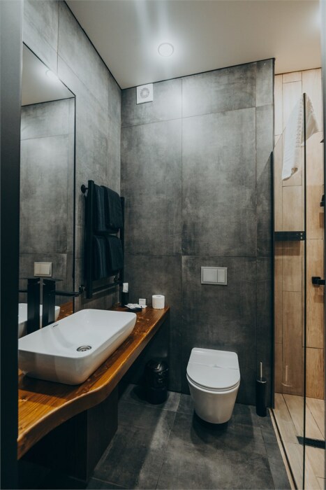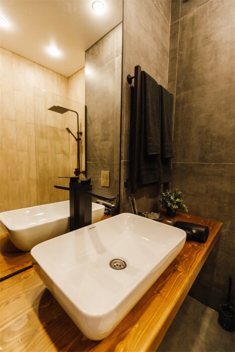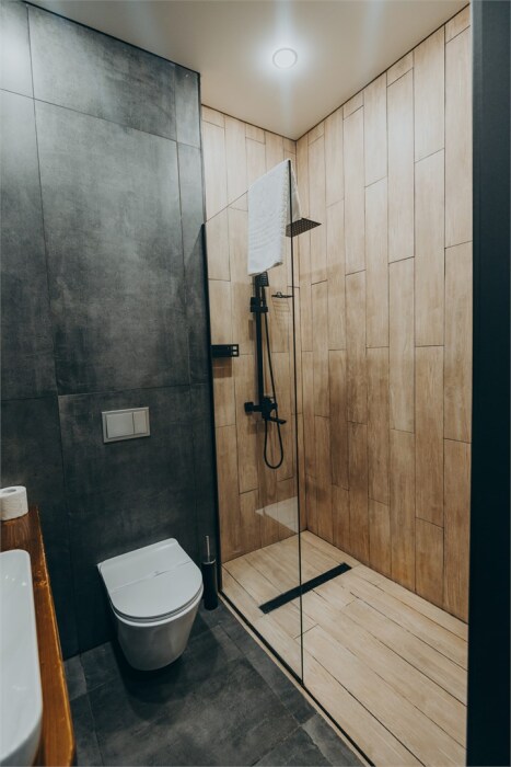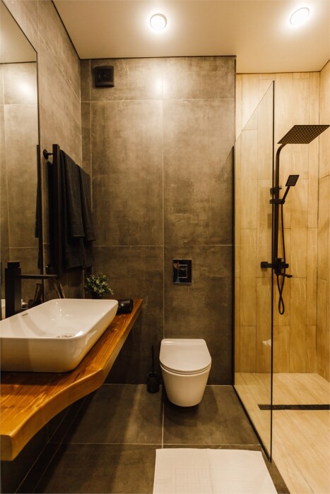 После дня на природе вас ждёт просторная ванная комната с роскошной опцией — тропическим душем, который смоет всю усталость.