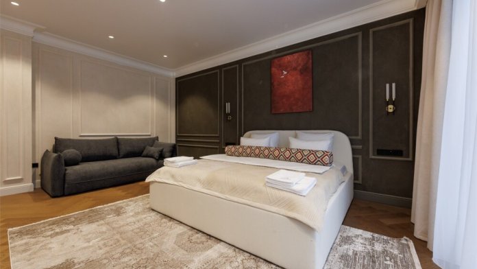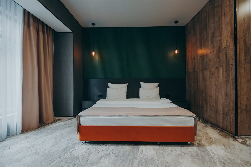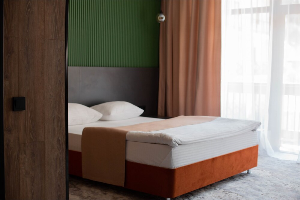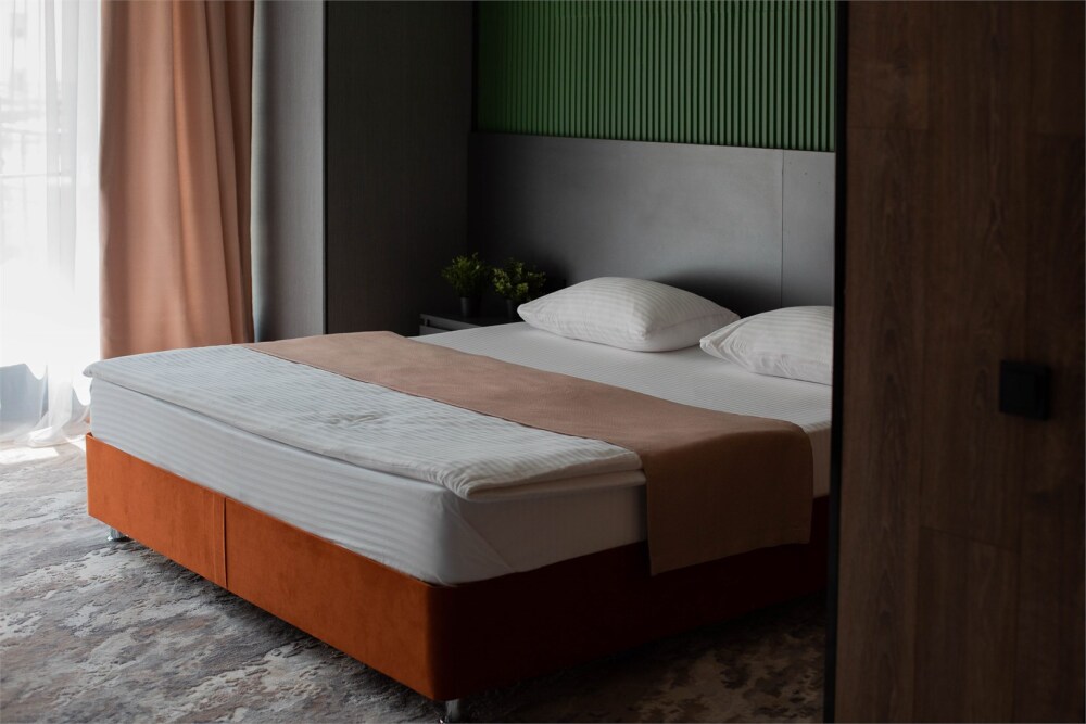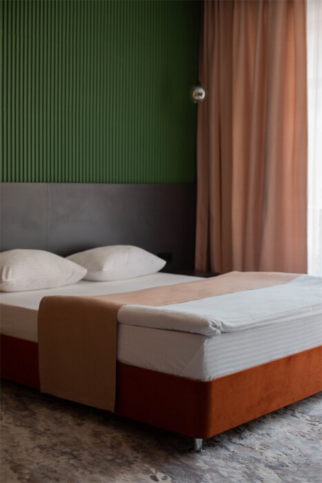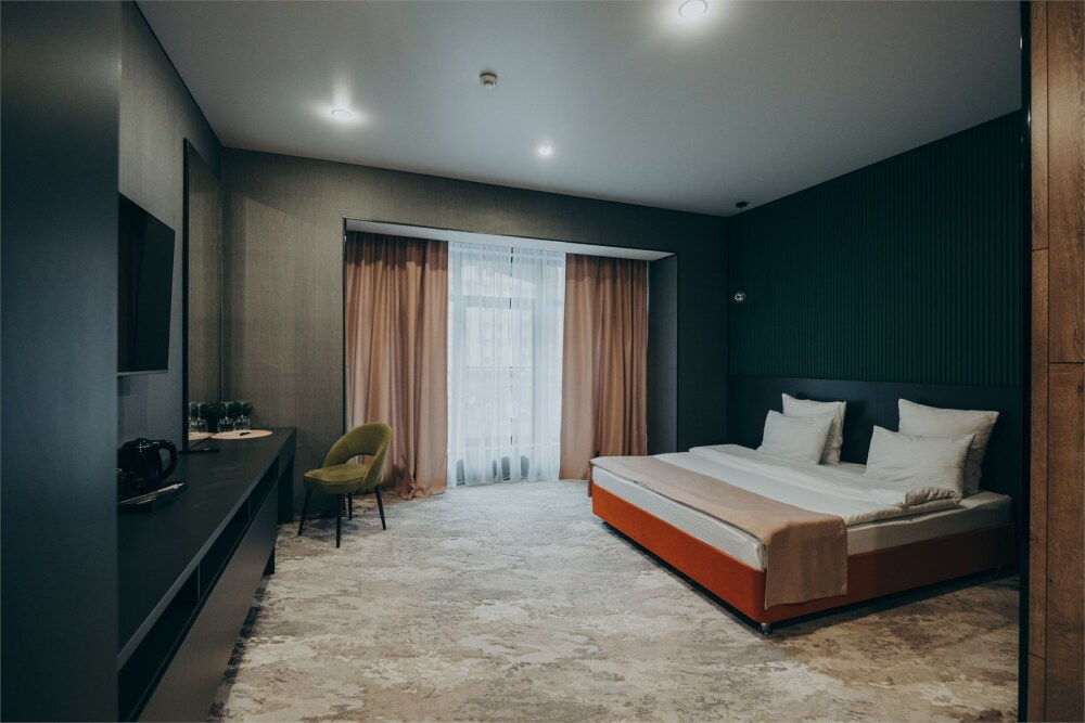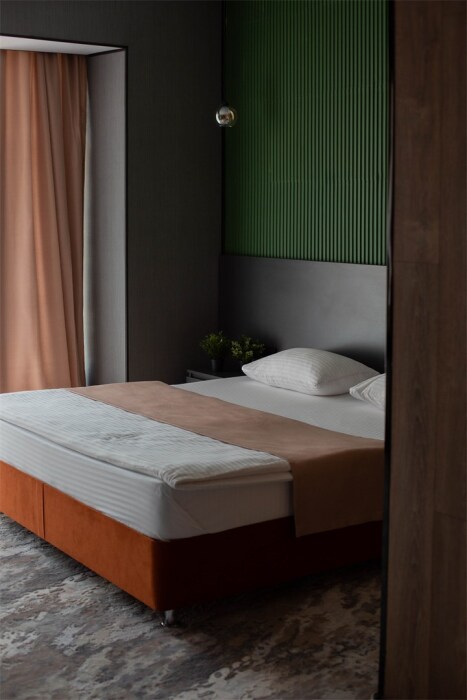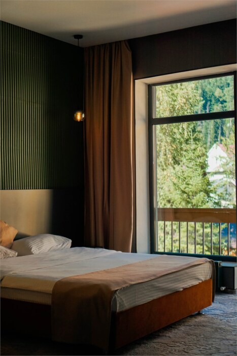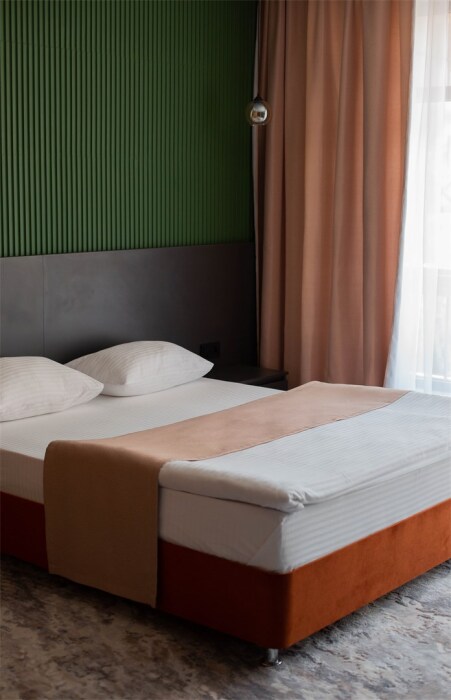 Уютный номер площадью 25 м² с двуспальной кроватью и собственной ванной комнатой. К вашим услугам современный телевизор со Smart TV, чайная станция и все необходимое для комфорта: набор полотенец, халаты, тапочки и косметические принадлежности. Затемненные шторы обеспечат спокойный сон, а ежедневная уборка поддержит идеальную чистоту.