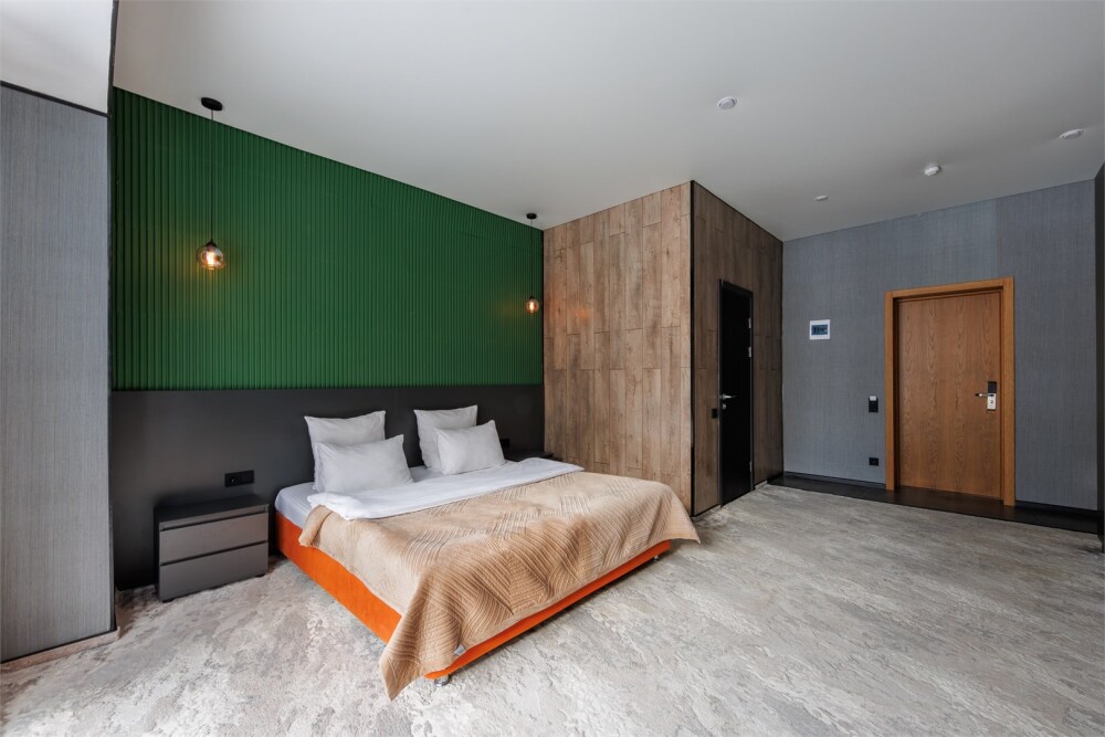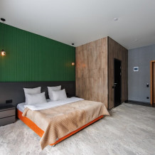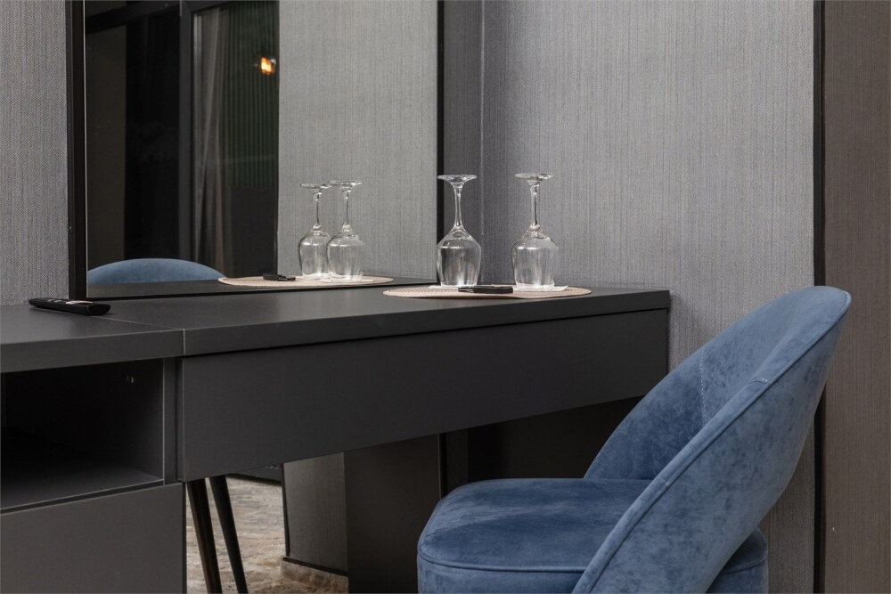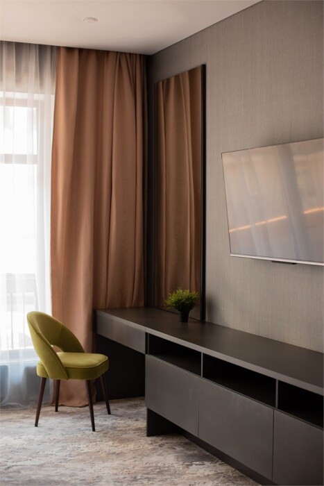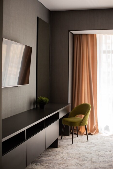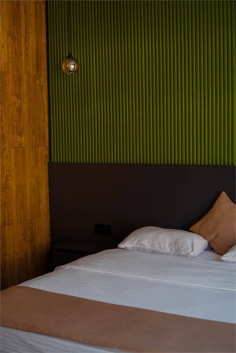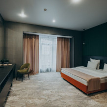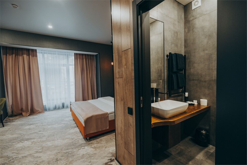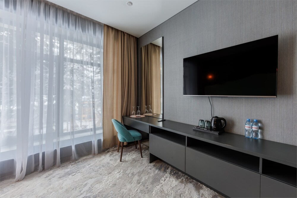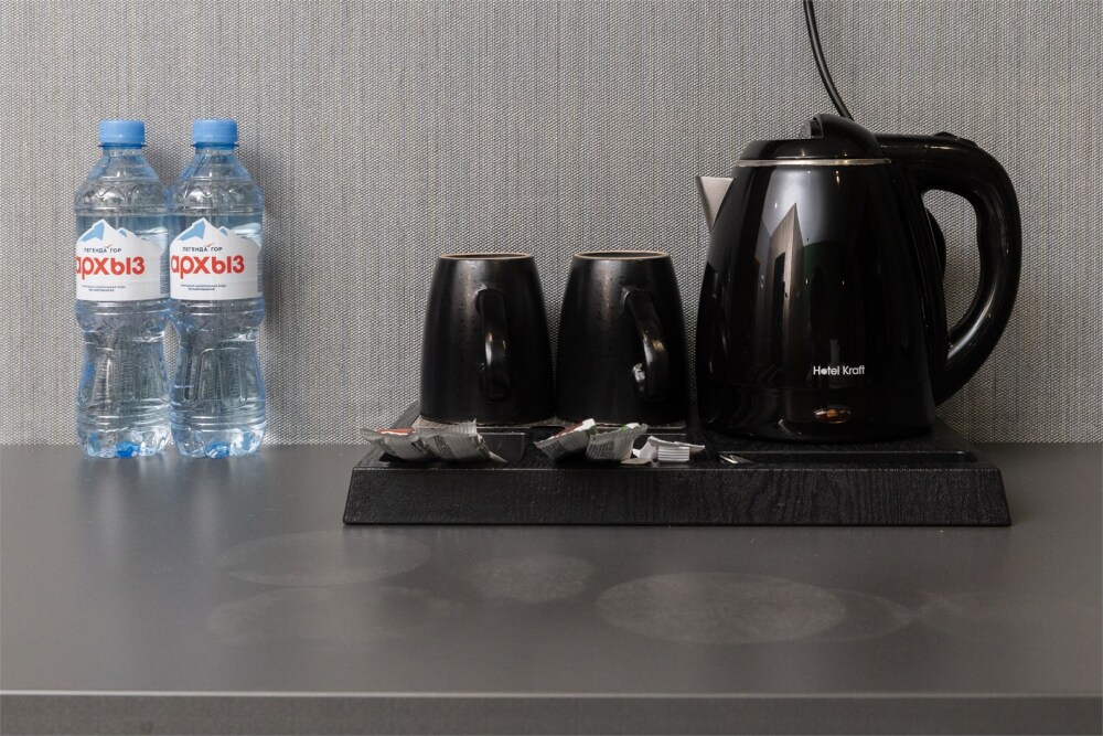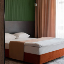 К вашим услугам собственная ванная комната, современный телевизор со Smart TV и двуспальная кровать. Мы позаботились о деталях: приготовили для вас мягкие халаты, тапочки и набор полотенец. Наслаждайтесь чаем, создавайте нужную атмосферу с помощью затемнённых штор и доверьте быт нам — в номере проводится ежедневная уборка.