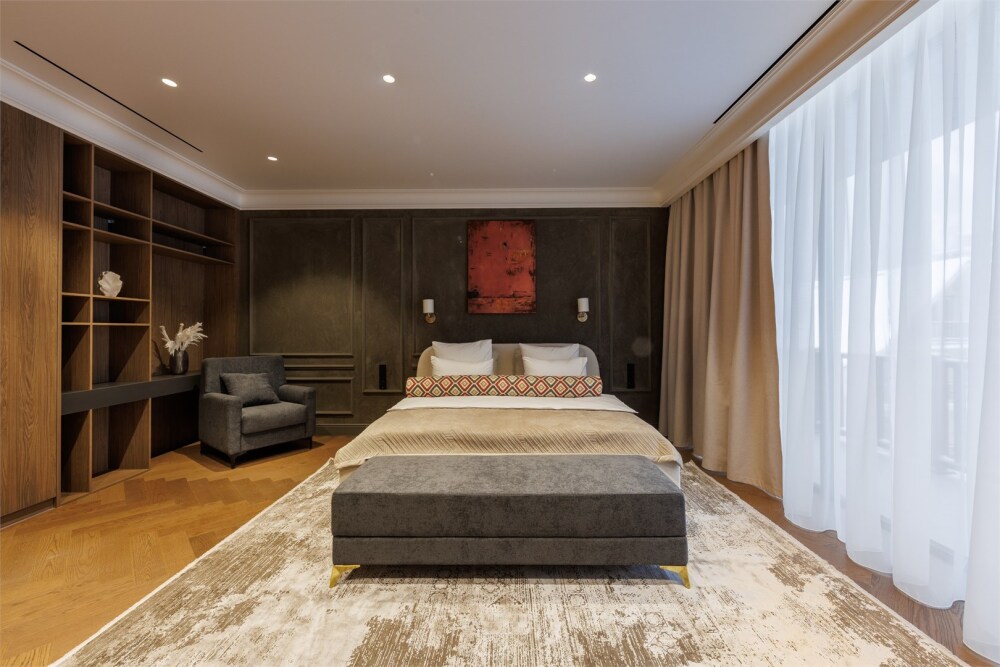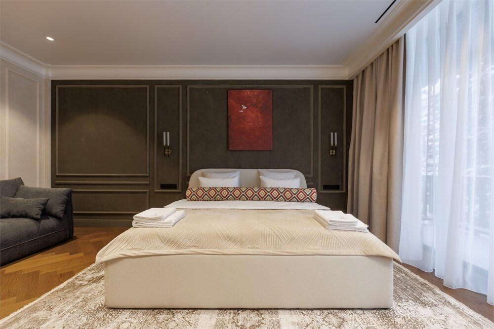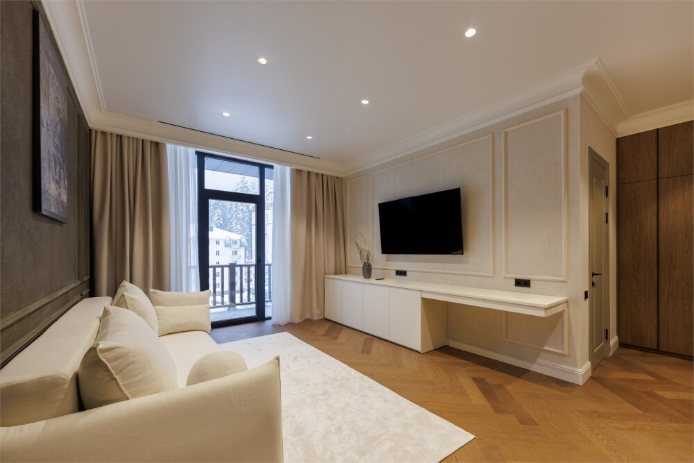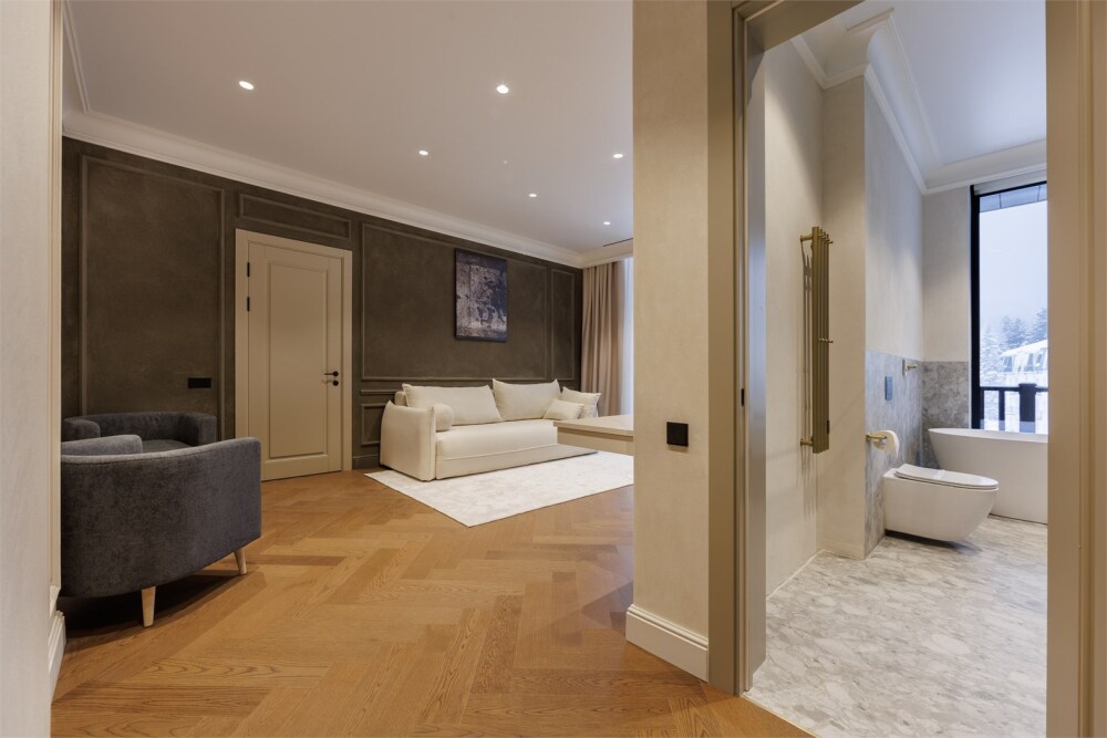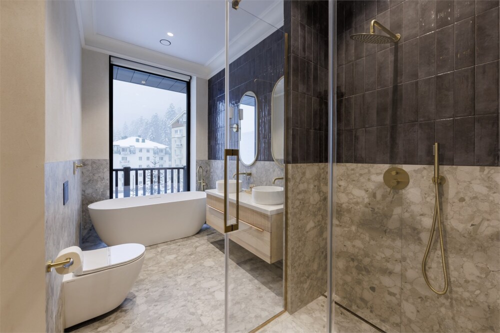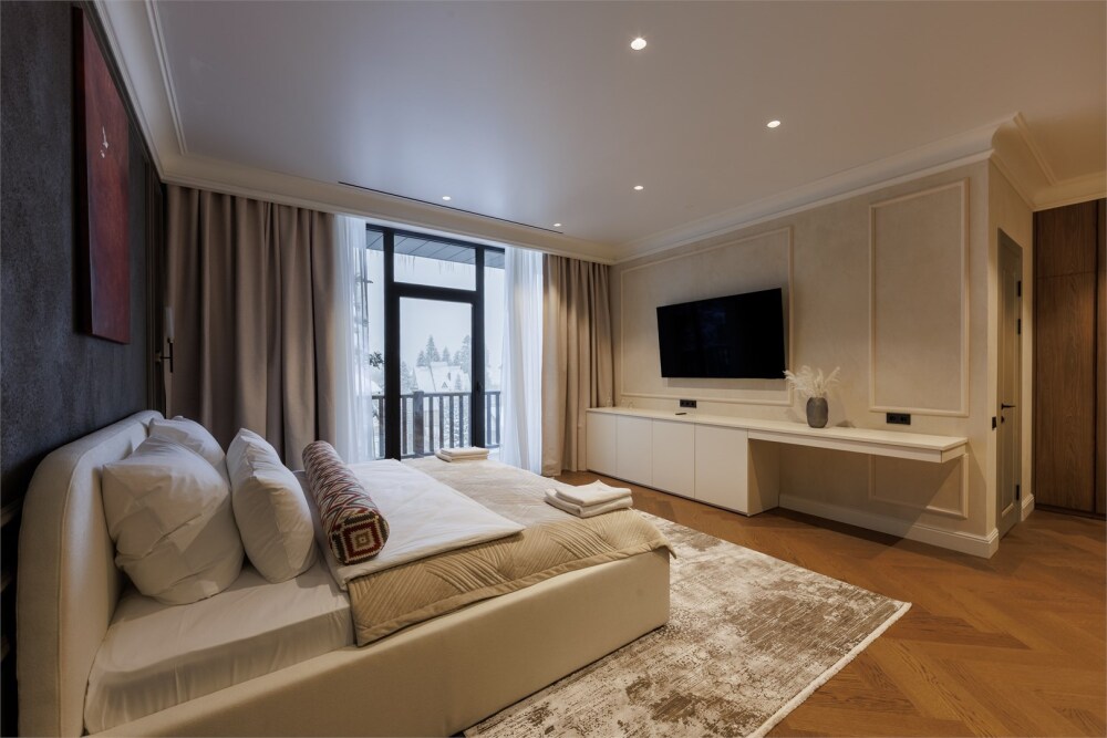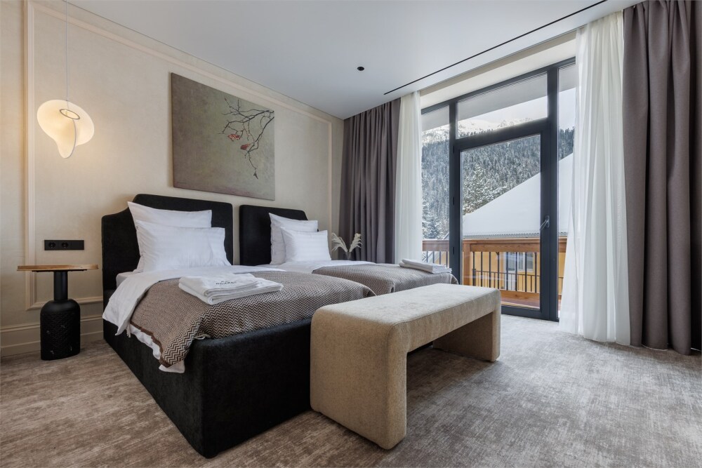 Просторное убежище для тех, кто ценит и личное пространство, и единение с природой. Номер состоит из гостиной с выходом на балкон и отдельной спальни, каждая — с огромными панорамными окнами, открывающими гипнотизирующий вид на горные вершины.