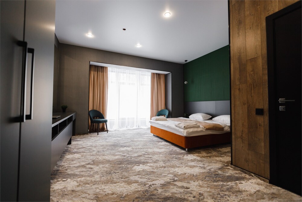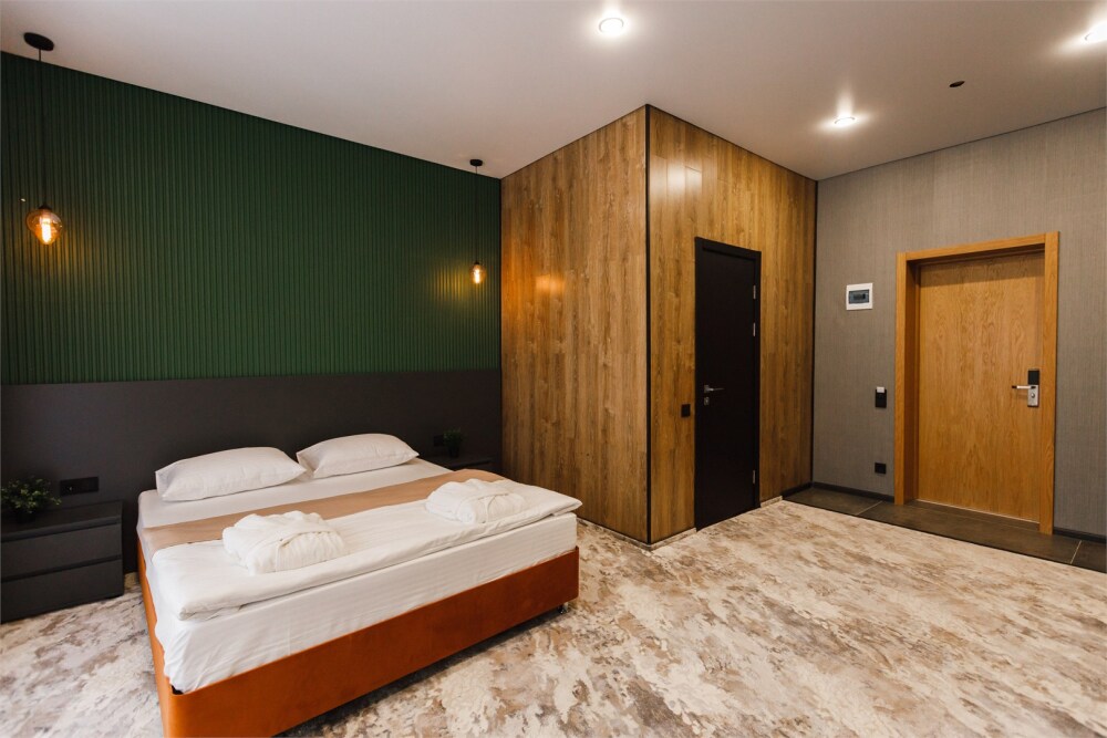 Для размещения гостям предлагают номера категорий Комфорт, Делекс и Люкс. Каждый номер оснащен всем необходимым: кровать, телевизор, чайник, холодильник, тапочки, собственная ванная комната. Предоставляются туалетно-косметические средства.