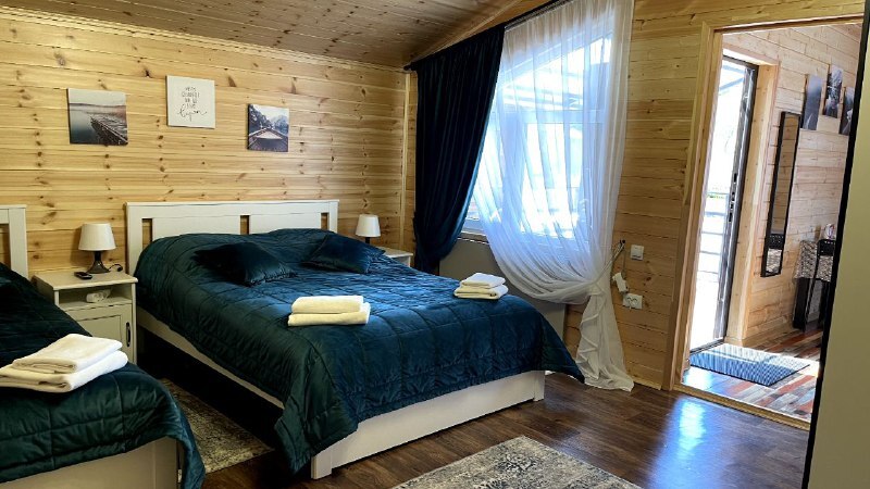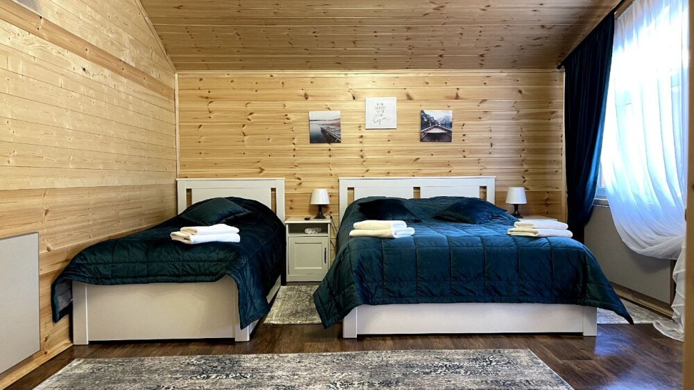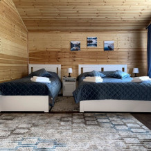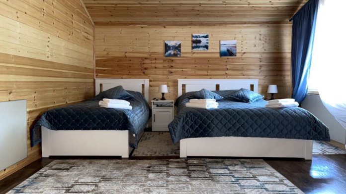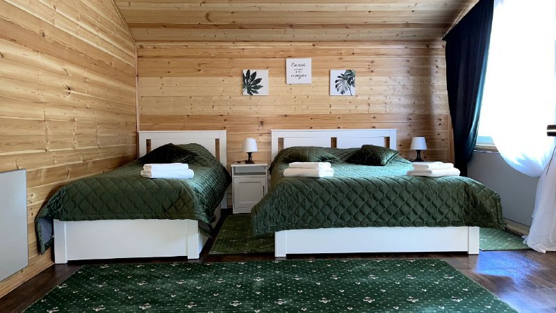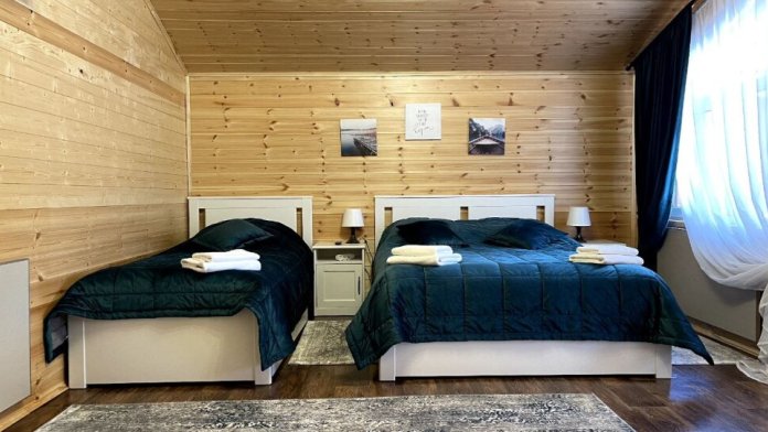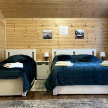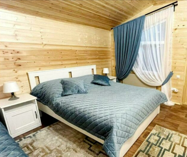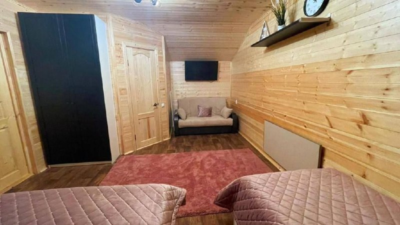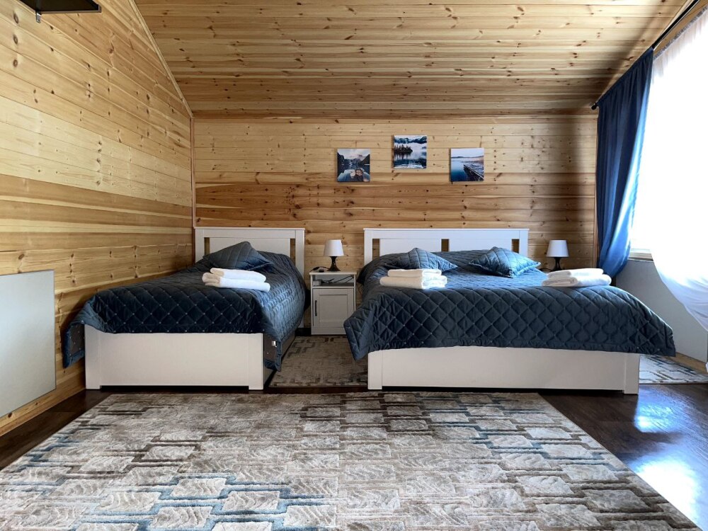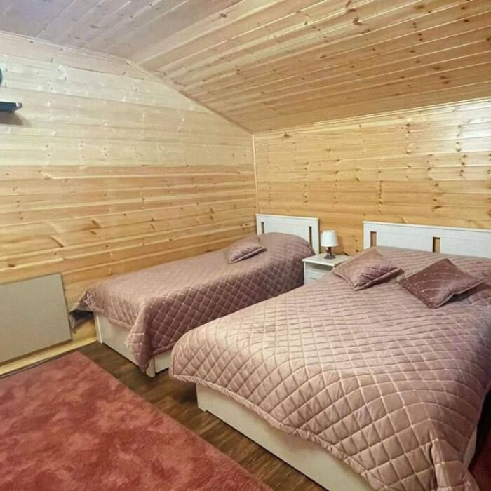 2 этаж, 3 спальни: 1 комната - 4 человека (2-спальная кровать + раскладной диван); 2 комната - 4 человека (2-спальная кровать + раскладной диван); 3 комната - 3 человека (2-спальная кровать + раскладное кресло), санузел, душевая кабина.