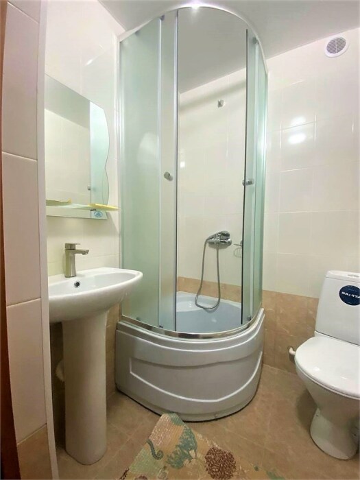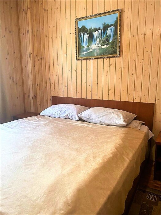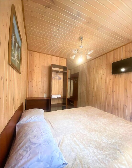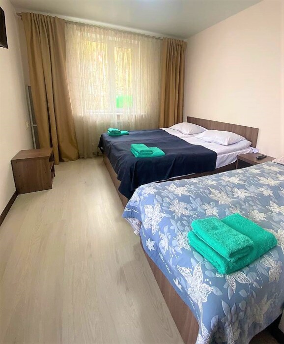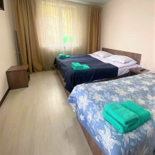 Комфортный семейный номер на 3 человек. Двуспальная кровать и одна односпальная кровать. Подойдет для семьи из трех человек или одной дружной компании. В номере есть все удобства для комфортного отдыха гостей.