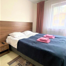 Двухместный стандартный номер с двумя раздельными или одной двуспальной кроватью. Оснащен всем необходимым для комфортного отдыха гостей. Большинство номеров имеют собственный балкон с видом на горы или лес.