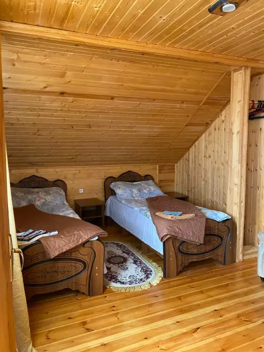 Дом 2-этажный имеет 2 раздельных входа, вмещает до 18 человек.