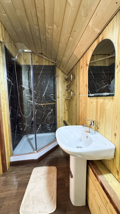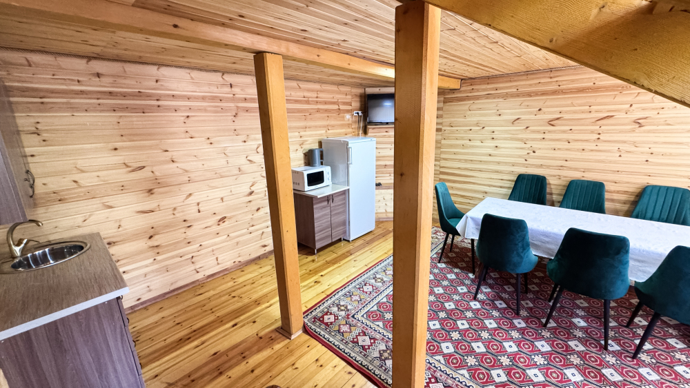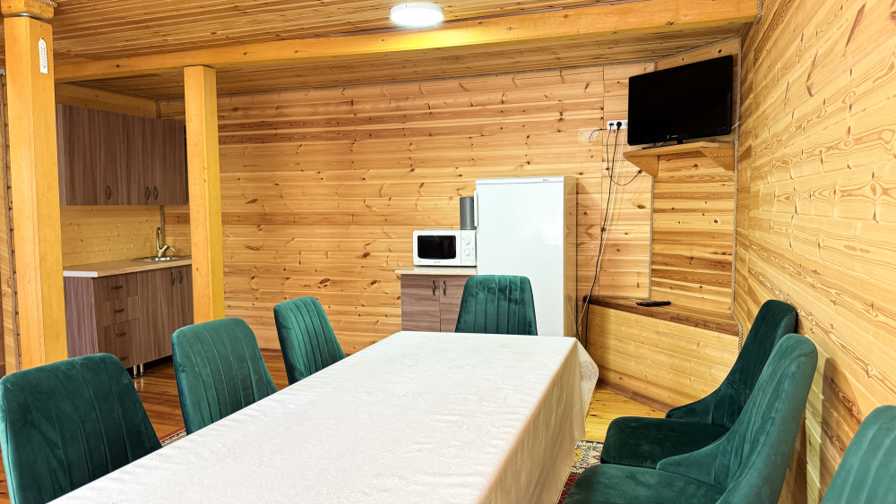 На территории базы отдыха расположена русская баня, кафе с местной национальной кухней, детская площадка, мангальная зона с беседками для отдыха.