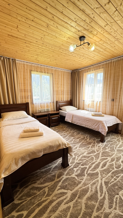 База отдыха «Элам» предлагает своим Гостям настоящее гостеприимство, домашнюю обстановку и уют. Объект представлен в виде отдельно распложенных коттеджных домов в пешей доступности горной речки Архыза, в 10 минутах езды от горнолыжного курорта «Романтик». Современный̆ дизайн номеров, отзывчивый̆ персонал, бесплатная парковка и мангальная зона.