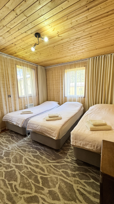 База отдыха принимает большие компании (от 8 до 50 человек) по выгодным предложениям с размещением в отдельные коттеджные дома. Также возможно размещение небольших компаний (от 1 до 4 человек).