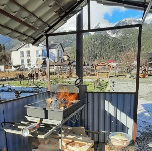 - летние беседки с мангалами, теплая беседка с крытой мангальной зоной;
