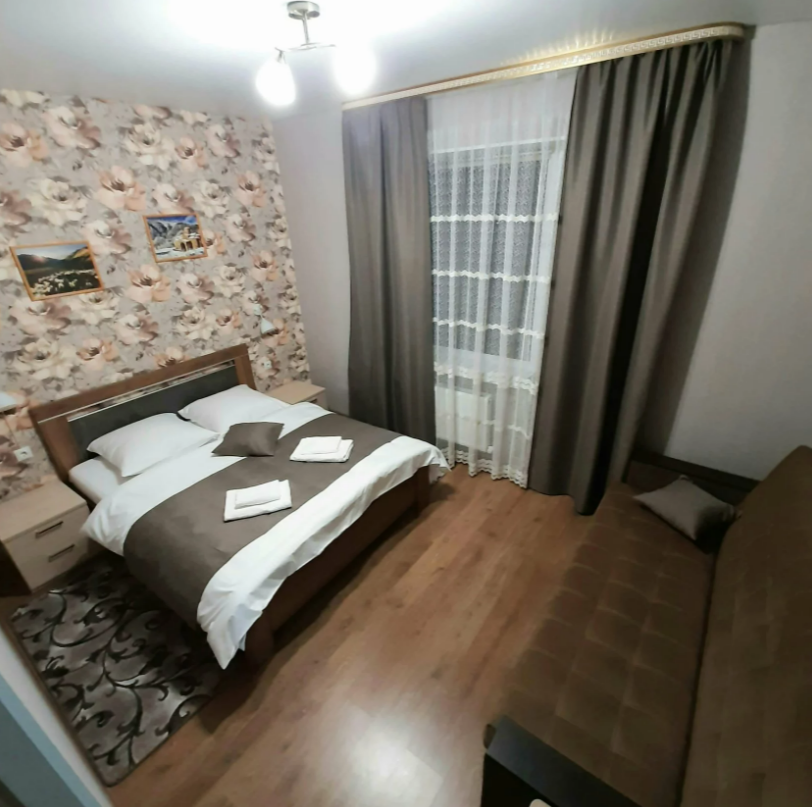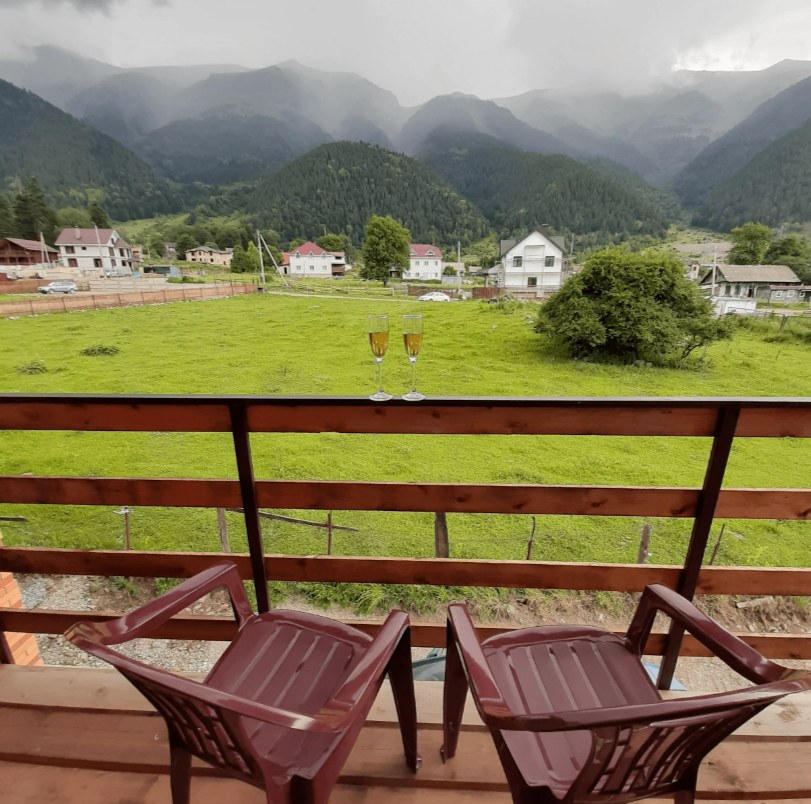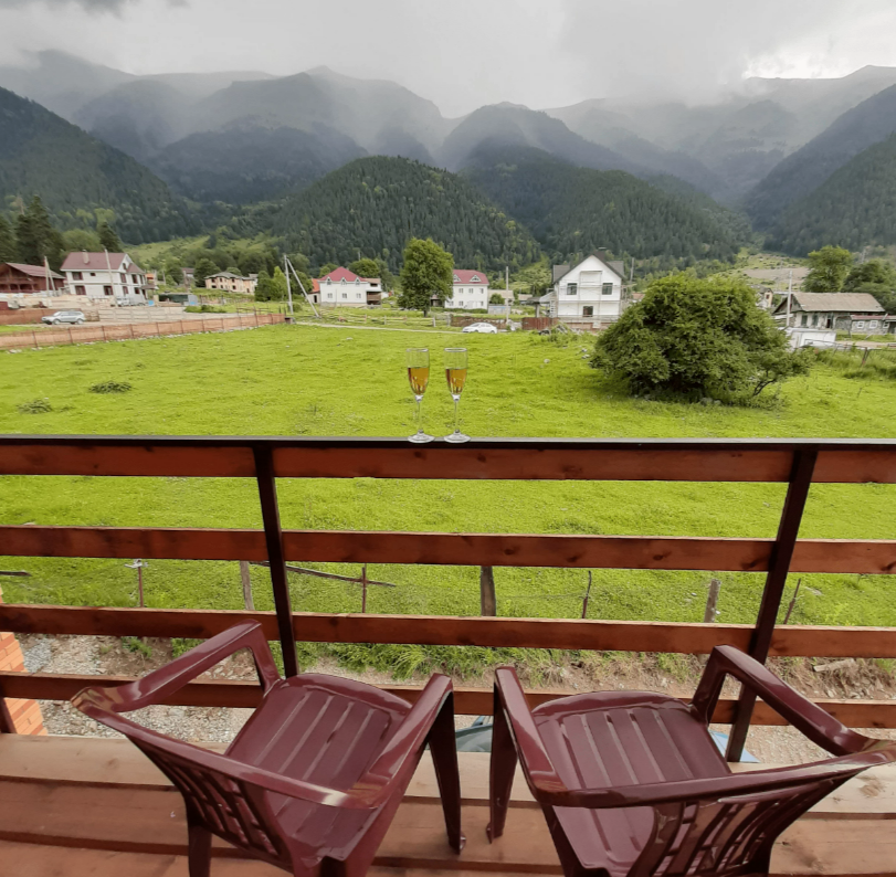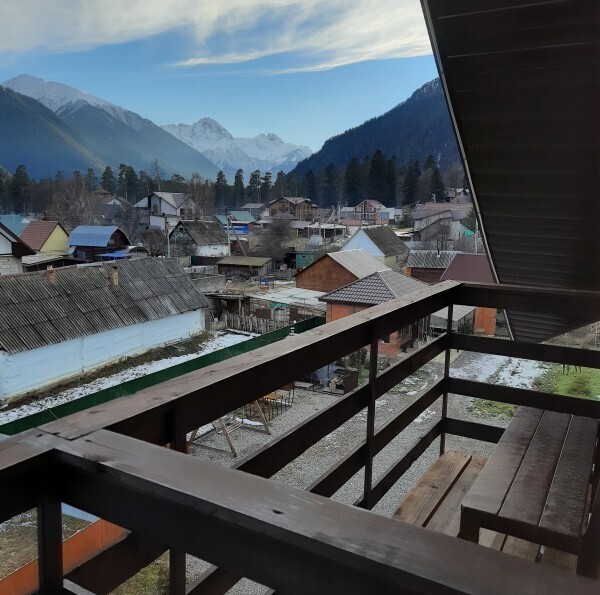 Апартаменты с кухней, расположены на третьем этаже с балконом с шикарным панорамным видом на горы.