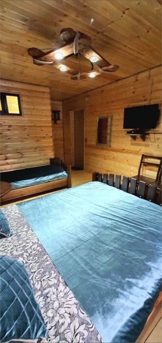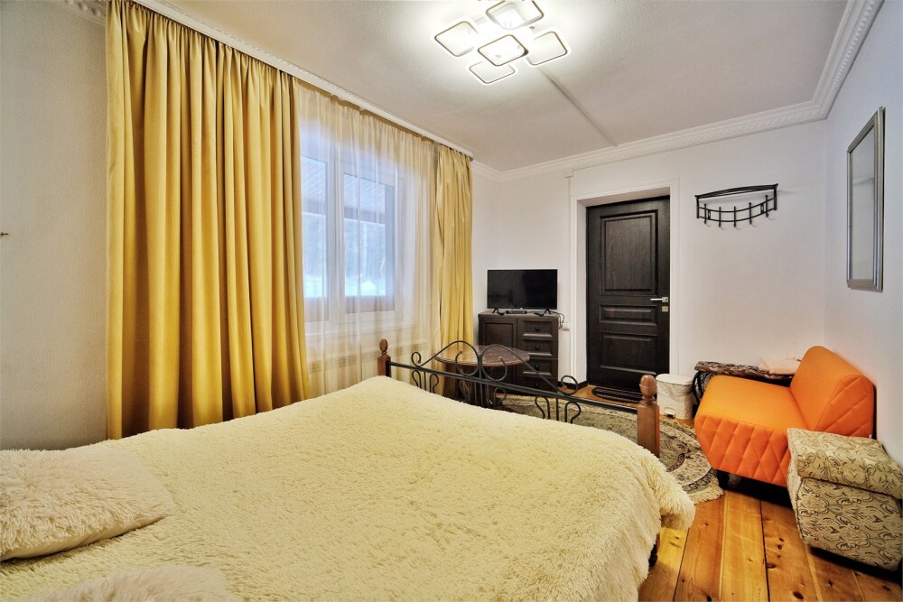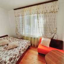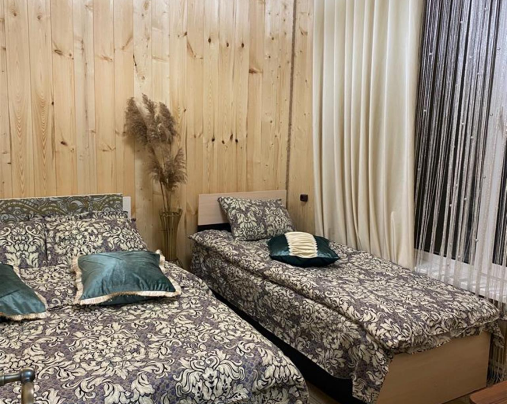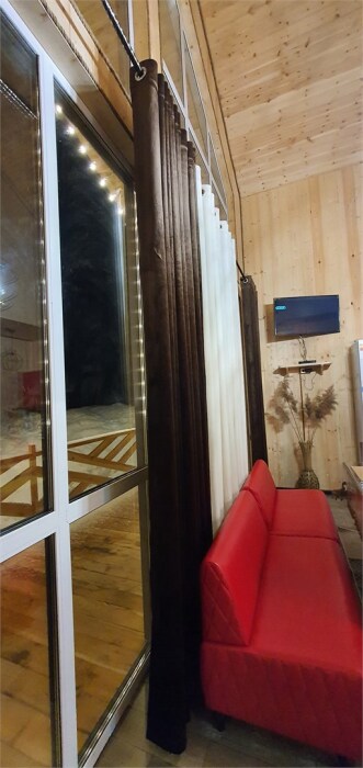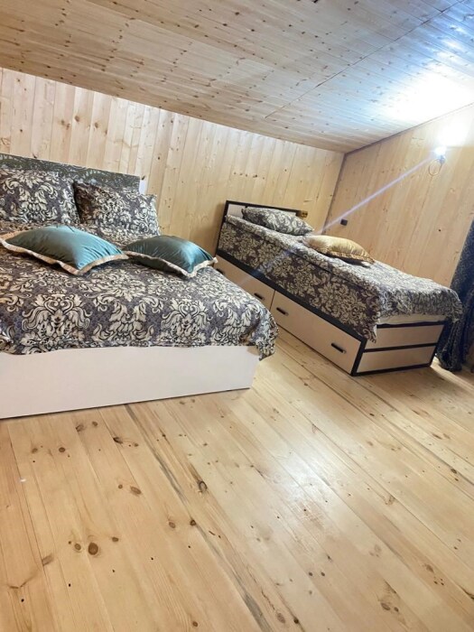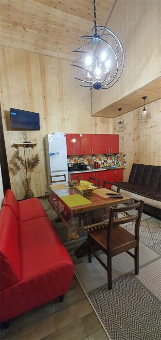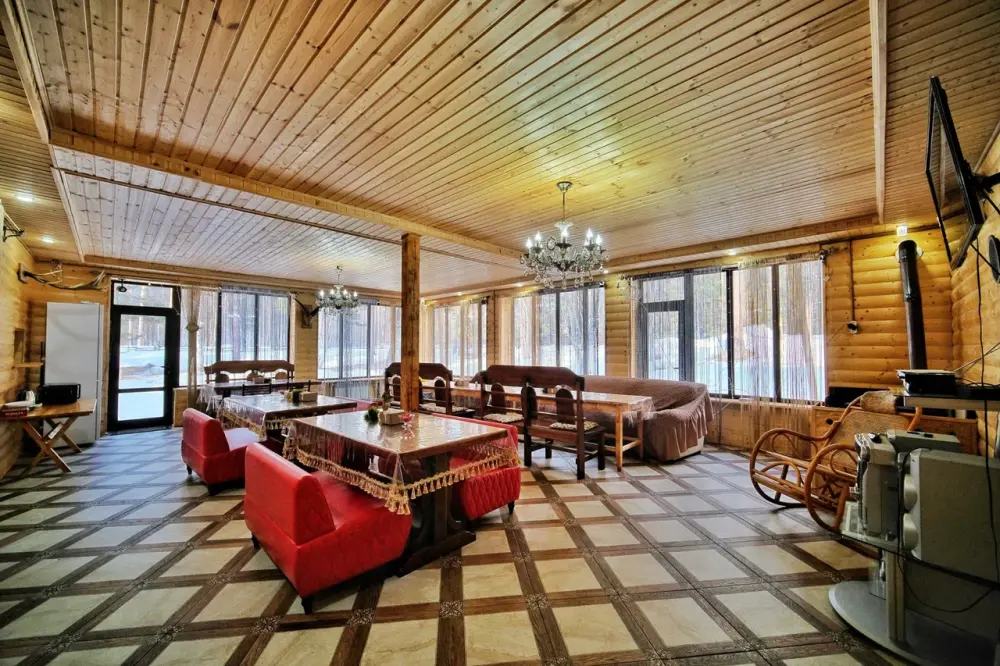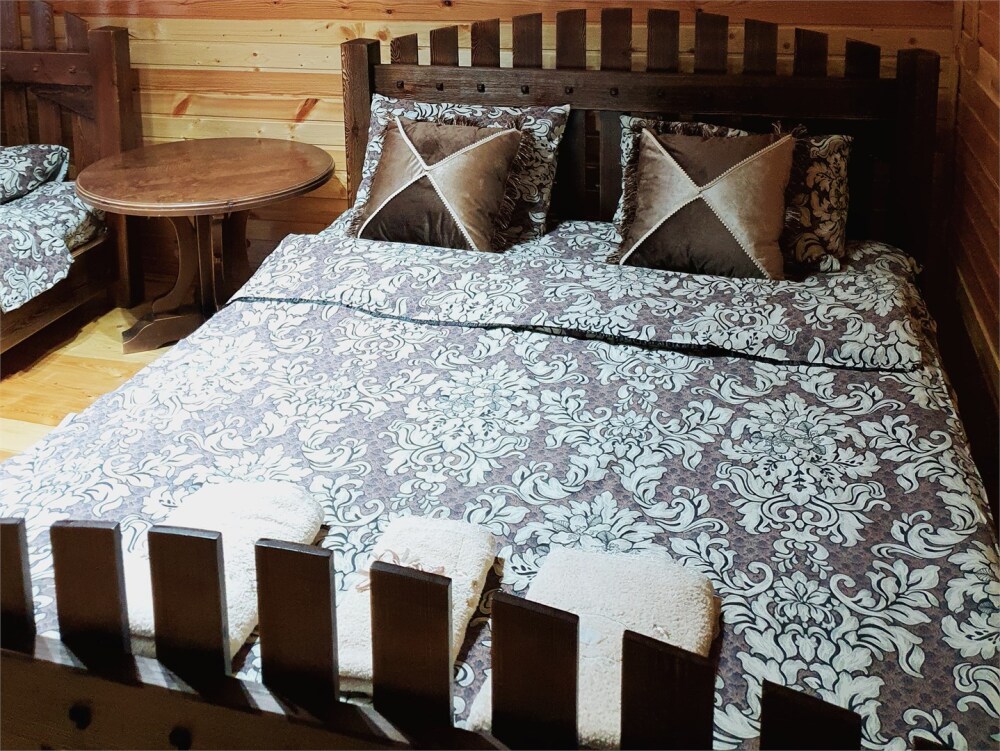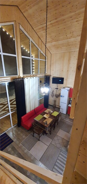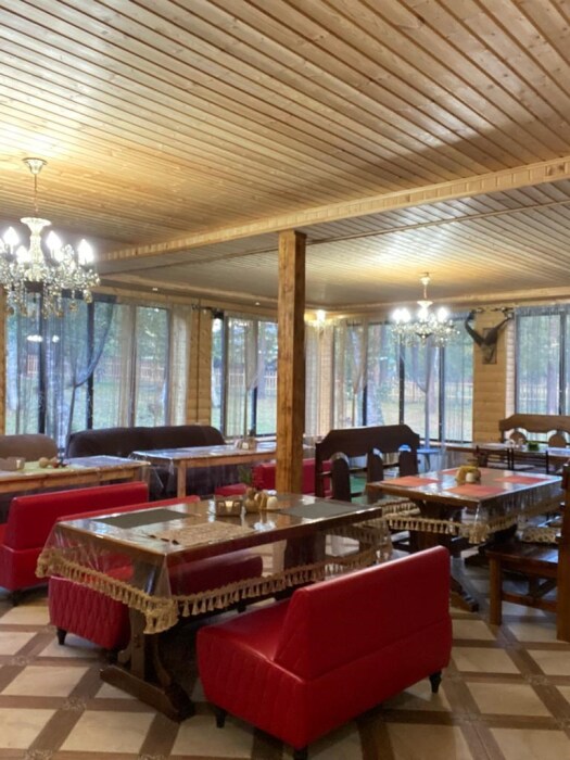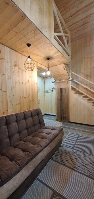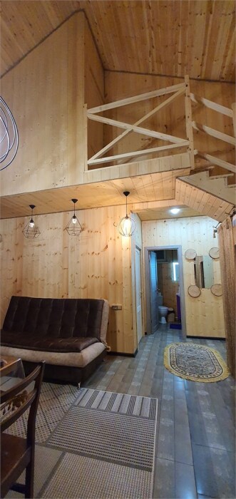 База отдыха состоит из вилл, шале и номеров 2 типов. Виллы Барнхаус вмещают от 7 до 11 человек. Мини-кухня включает электрический чайник, микроволновую печь, варочную панель, набор посуды и холодильник. Перед каждым домиком терраса и свой мангал. Это 3 новых двухэтажных коттеджа, полностью из натуральных и безопасных для здоровья и окружающей среды хвойных пород дерева, что обеспечивает отличный микроклимат. Дома отличаются стильным декором с минимальным количеством стен, благодаря чему воздух в доме свободно циркулирует, оборудованы всем необходимым для комфортного проживания. Завораживает необыкновенный панорамный вид из окна на горы и хвойный лес. Эко-виллы с террасой, оборудованы спальнями, залом и ванной комнатой.