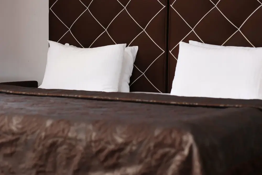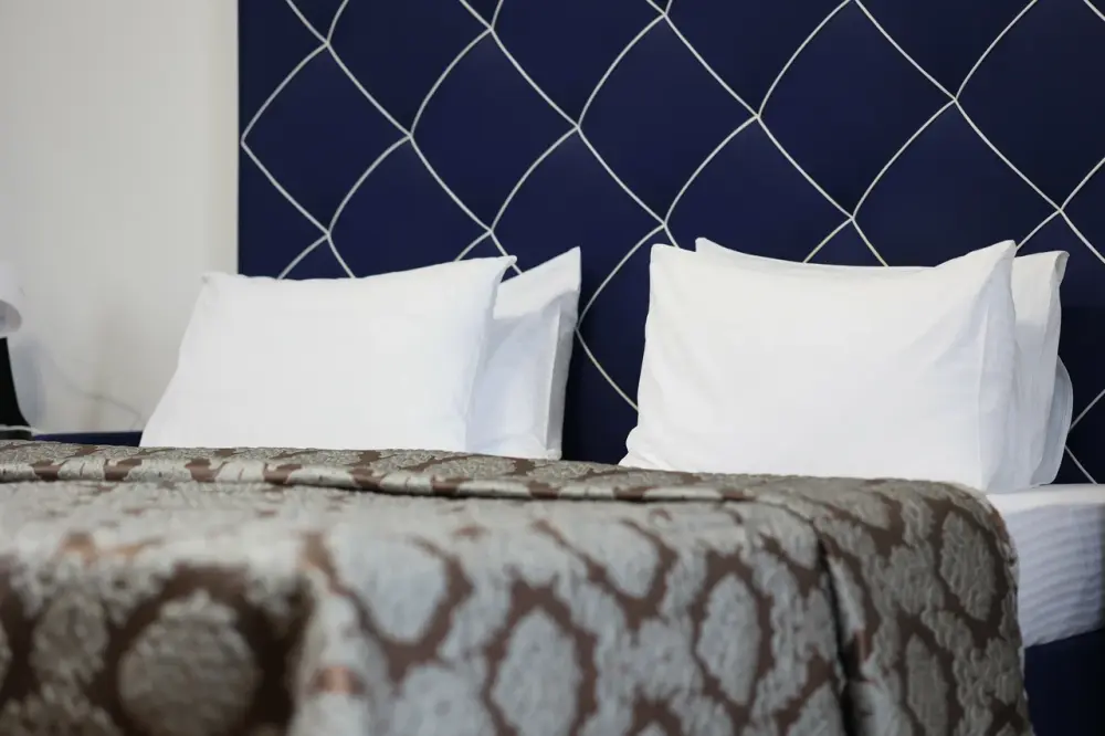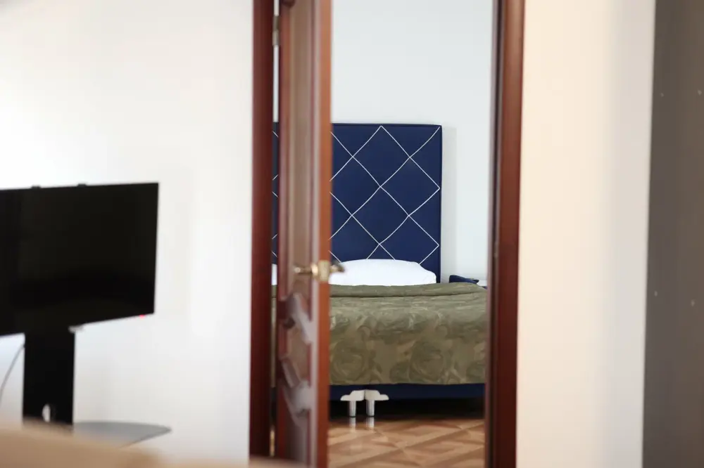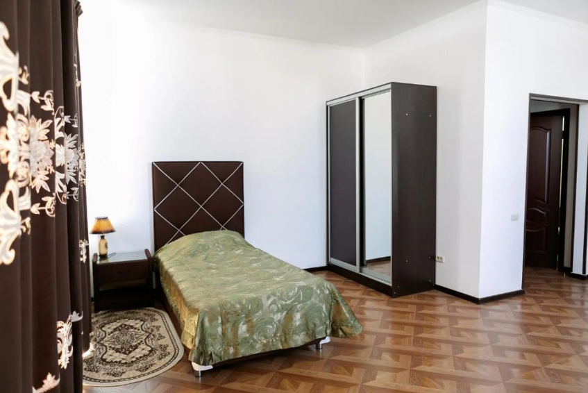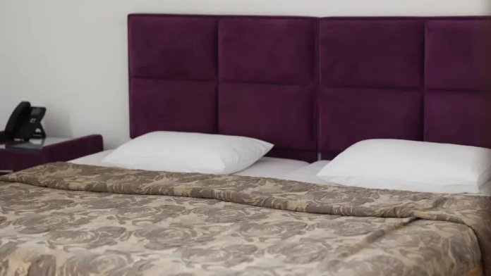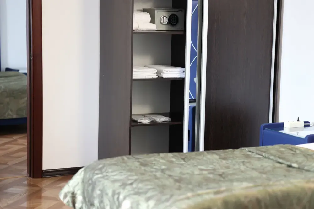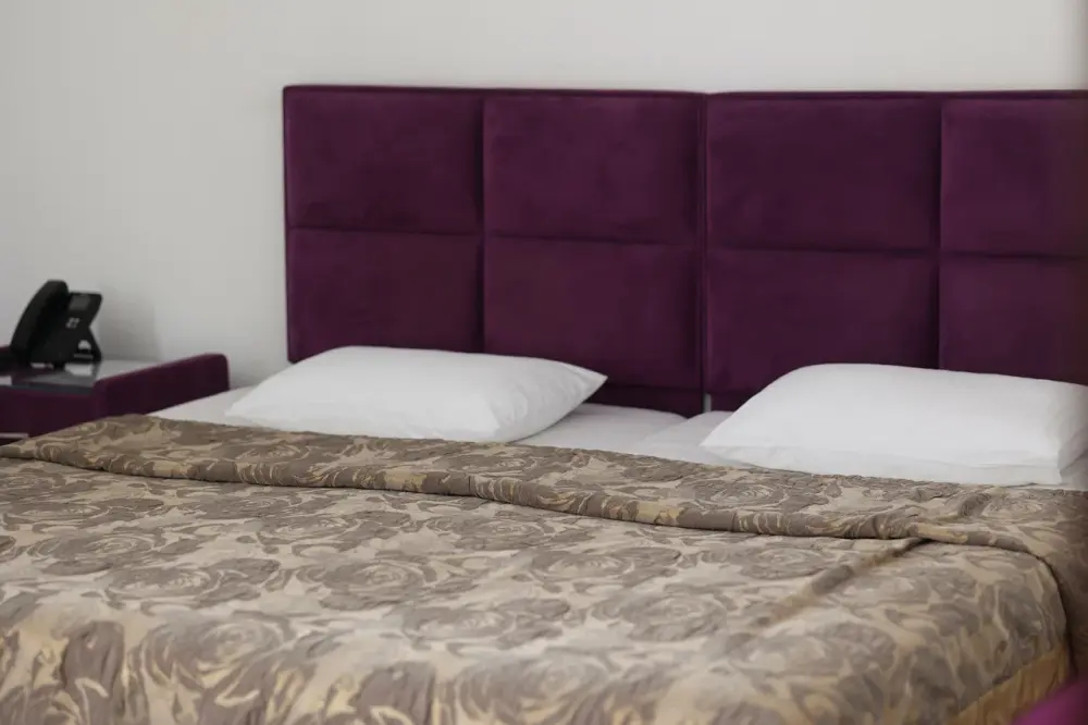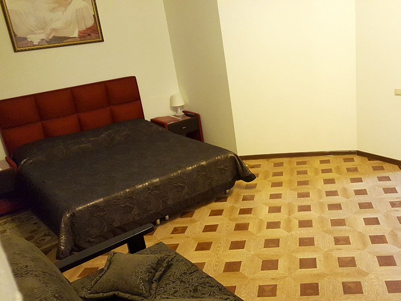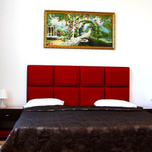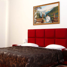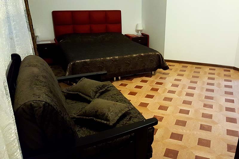 В номере: 2 двуспальные кровати или 2 односпальные кровати + 1 двуспальная кровать.